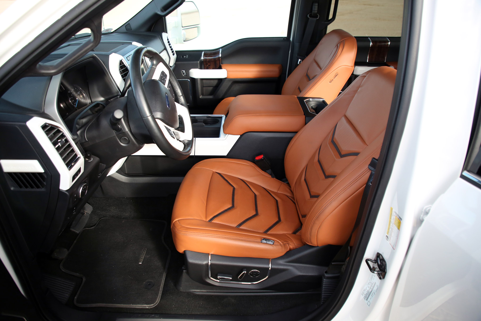 Color-matched White Platinum interior parts, Alea Leather Napa Carmel leather seats with headrest delete