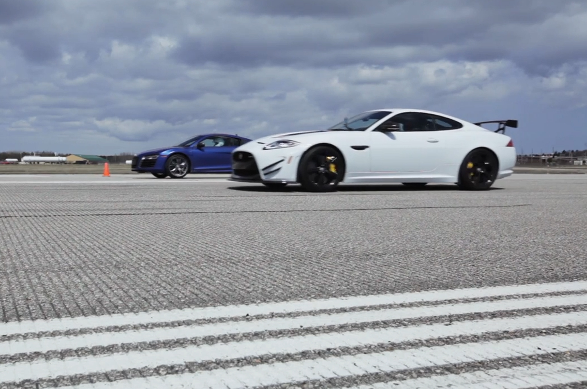 Ultimately, the 2014 Audi R8 V10 Plus gets the edge from first launch. The all-wheel-drive R8 takes off like a bandit, leaving the track-prepped Jaguar XKR-S GT firmly in its wake. No doubt both are an absolute joy to hoon around a track, but in a straight line the Audi's V-10 and monster grip are too much for the Jaguar to handle.