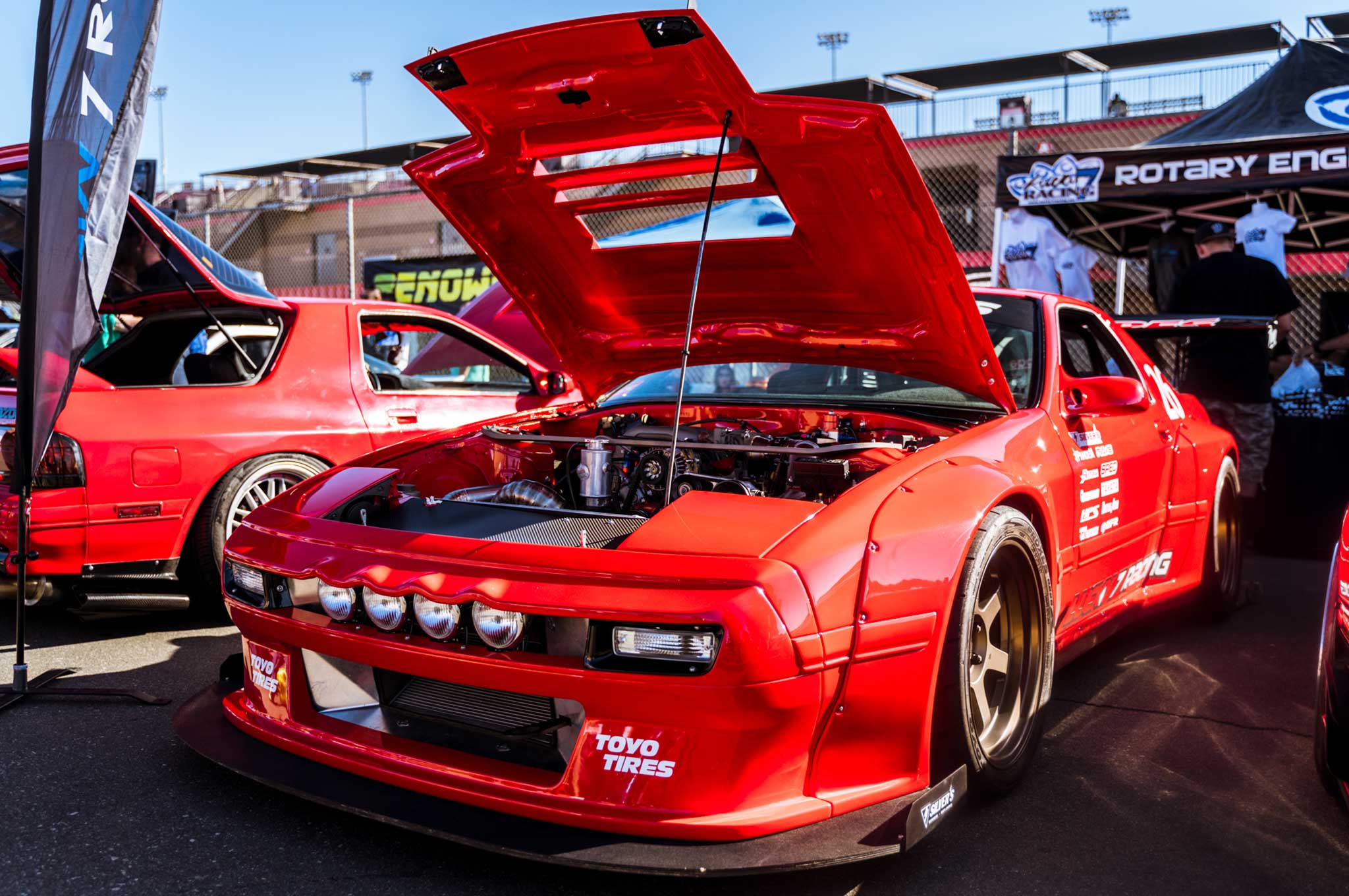 22nd annual meeting of the rotary faithful gets some SEMA FD3S RX-7 spillover in Rob Dahm's 4-rotor AWD monster and Jonny Grunwald's updated TCP Magic widebody