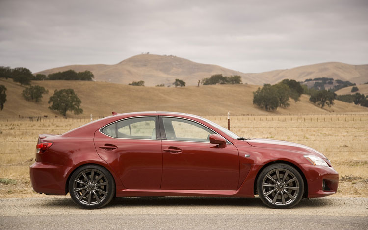 Acknowledging that their new IS F offers higher-performance limits than any public road can handle, the Lexus team unveiled their new black sheep at Laguna Seca racetrack. There, it took about, oh, two or three turns to realize the Nrburgring-tuned IS F is going to make serious trouble for the likes of the new BMW M3, the Audi RS4, and the Mercedes C63 AMG. The car is, quite simply, a monster: Acceleration is brutal, the brakes are wicked-strong, and handling grip is immense (a Sport mode for Lexus's VDIM stability-control system increases steering weight, boosts throttle response, and allows the tail to step out usefully before the electronics step in; Lexus says Sport produces faster lap times than switching off the system altogether). You could easily convince yourself you're driving a track car. The engine note completes the illusion. Given that Toyota runs its own F1 team, you expect the V-8 to scream like Jarno Trulli's single-seater. Wrong series. Instead, the IS F bellows like a Nextel Cup Toyota Camry (redline is a relatively low 6800 rpm).