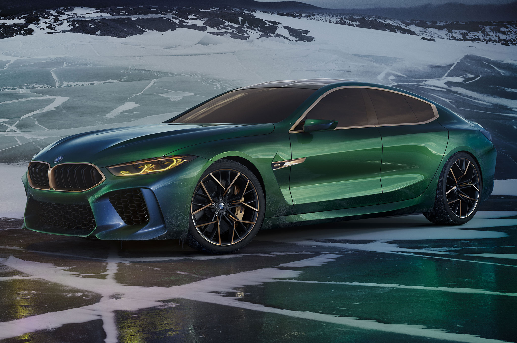 BMW previewed an alluring flagship in the form of the 8 Series concept last year, but the M8 Gran Coupe concept is even more jaw-dropping with its two extra doors, M touches, and gold exterior accents. The model debuted at the Geneva Motor Show this week.