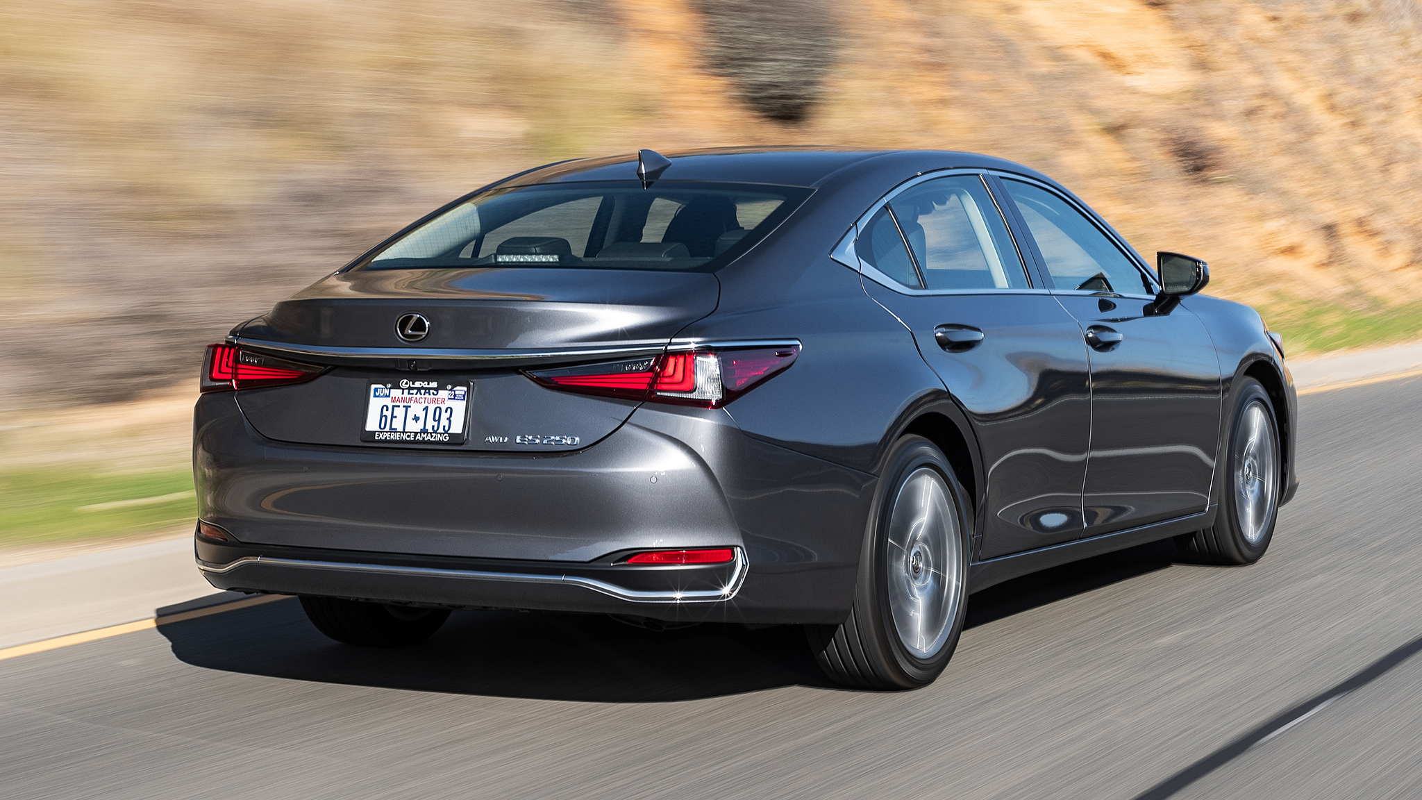 The 250 badge means this Lexus is powered by a 2.5-liter four-cylinder non-turbo engine that makes 203 horsepower and 184 lb-ft of torque. That's way less than what the competition makes, but the ES is also available with the more powerful V-6 for the same money, driving the front wheels only. If performance is less important to you and perhaps you live in a place where it snows often, the ES250 AWD may be the one to get.