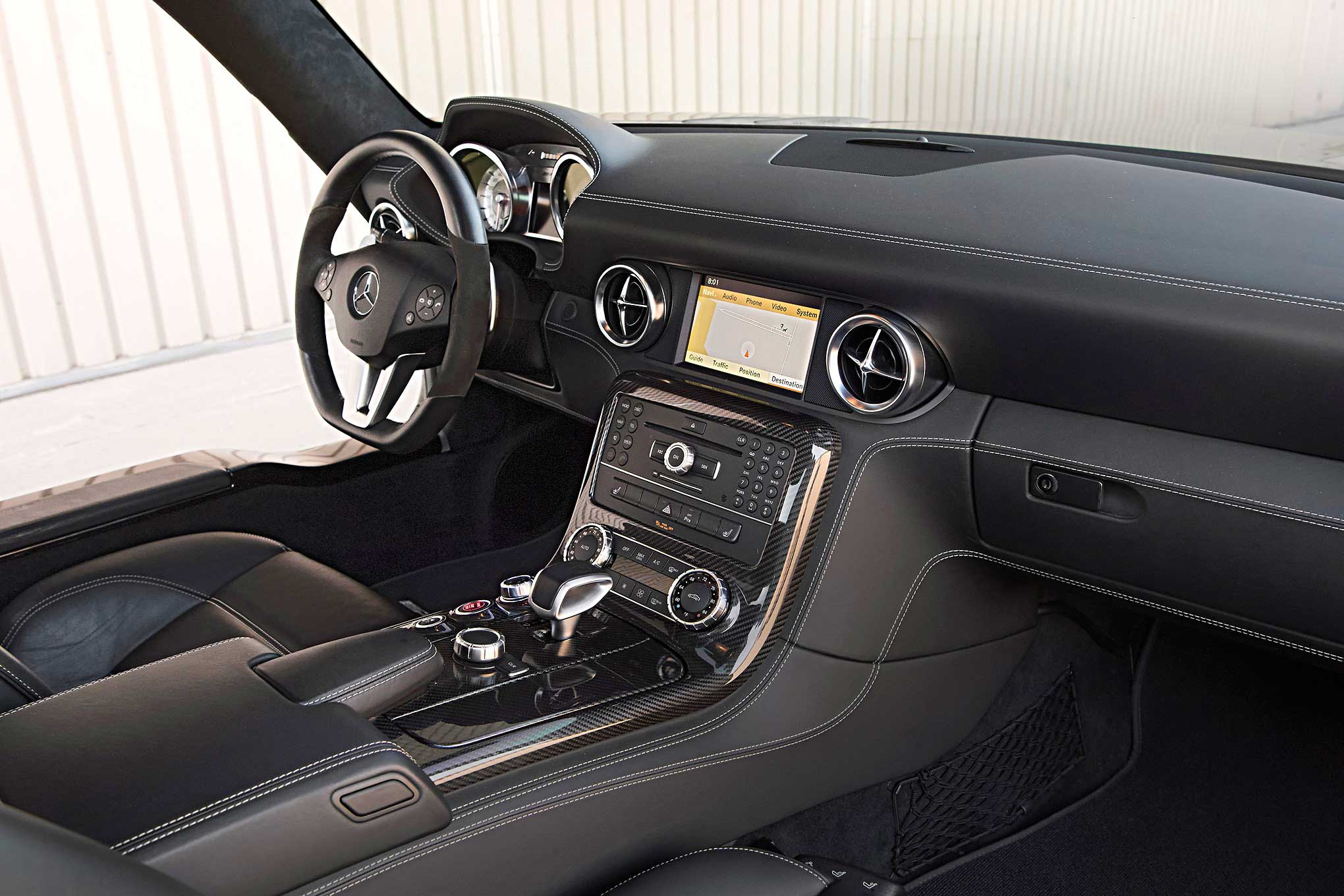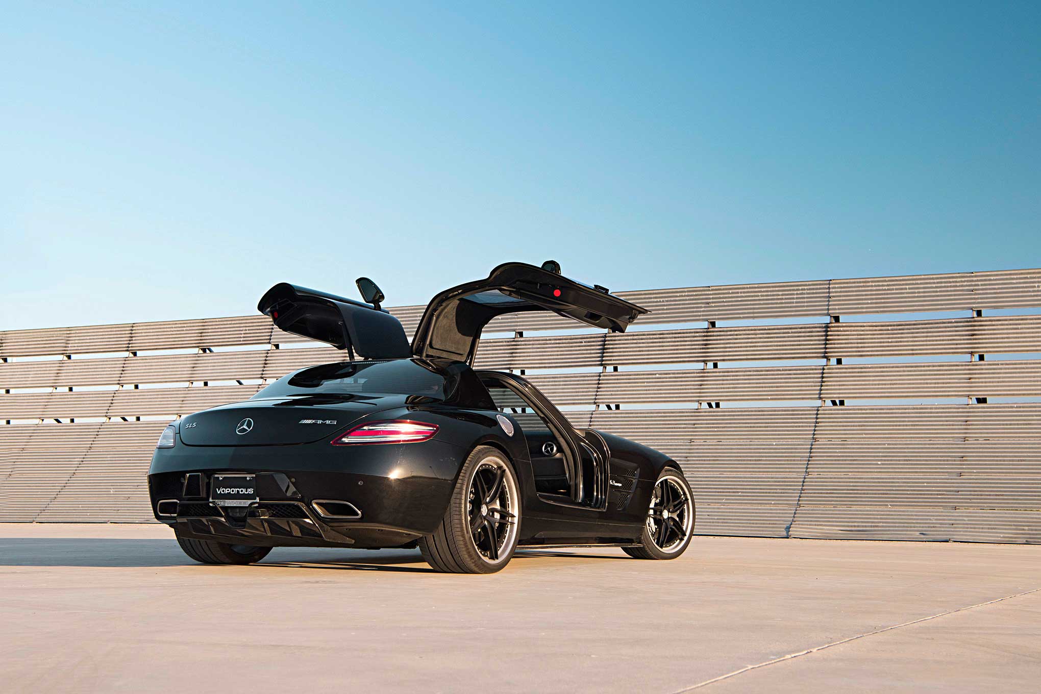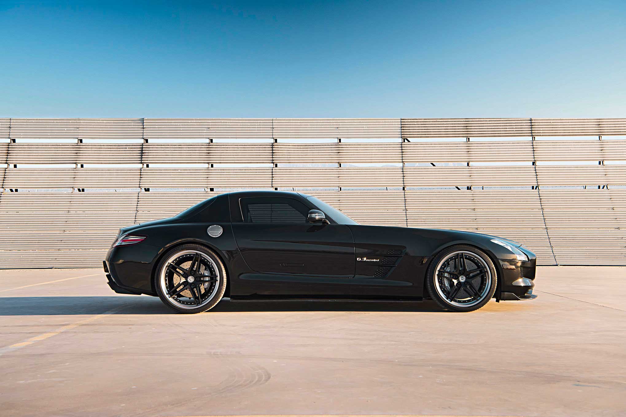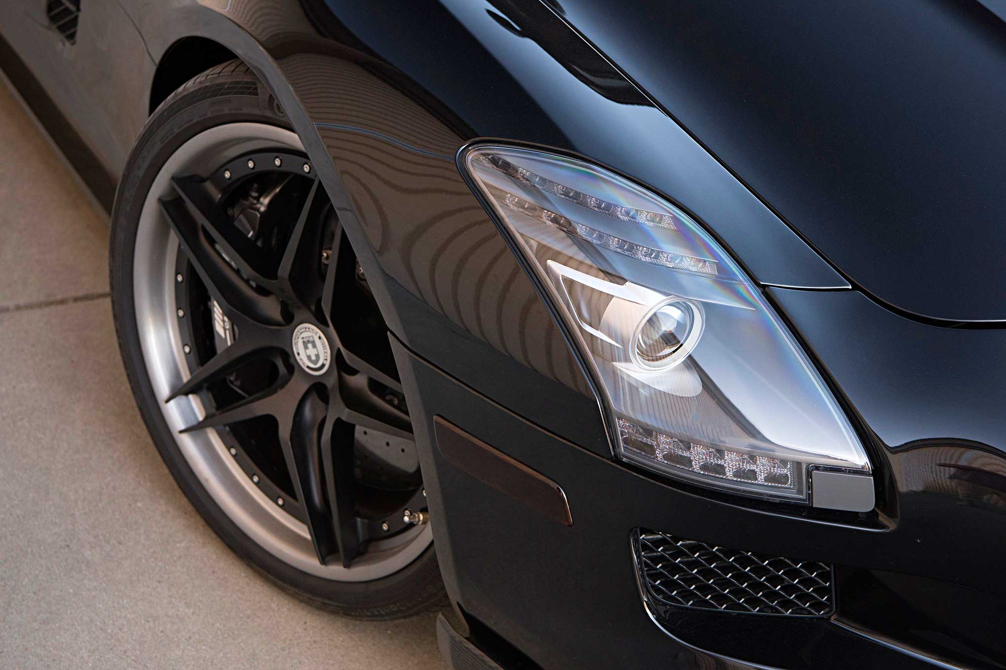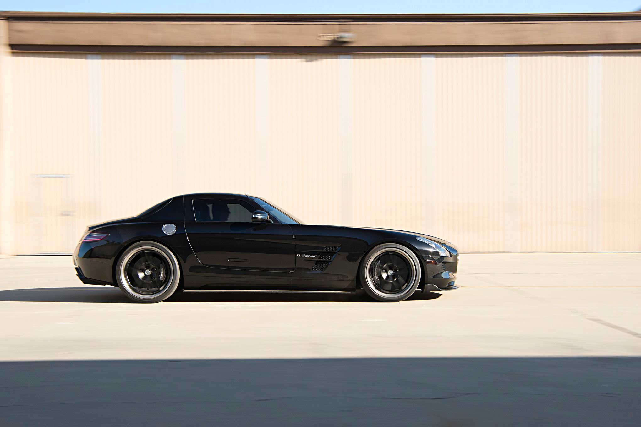 Still dark, I do my best to quietly back out of the driveway and idle down the street simply out of respect for my sleeping neighbors. Only, there's no sneaking around in this car. Even at a mere idle, the deep rumbling of the engine is enough to wake the senses, and mine are now at full attention. In factory spec, the Mercedes-Benz SLS AMG is automotive performance engineering at its finest. Considered the spiritual successor to the legendary 300SL Gullwing and follow-up to the SLR McLaren supercar, the project was deemed so important that Mercedes-Benz boss Dr. Dieter Zetsche handed over complete design and build responsibilities to AMG. In doing so, aside from the homologated, barely-a-road-car CLK GTR, the SLS is the first production-run vehicle created entirely by AMG.