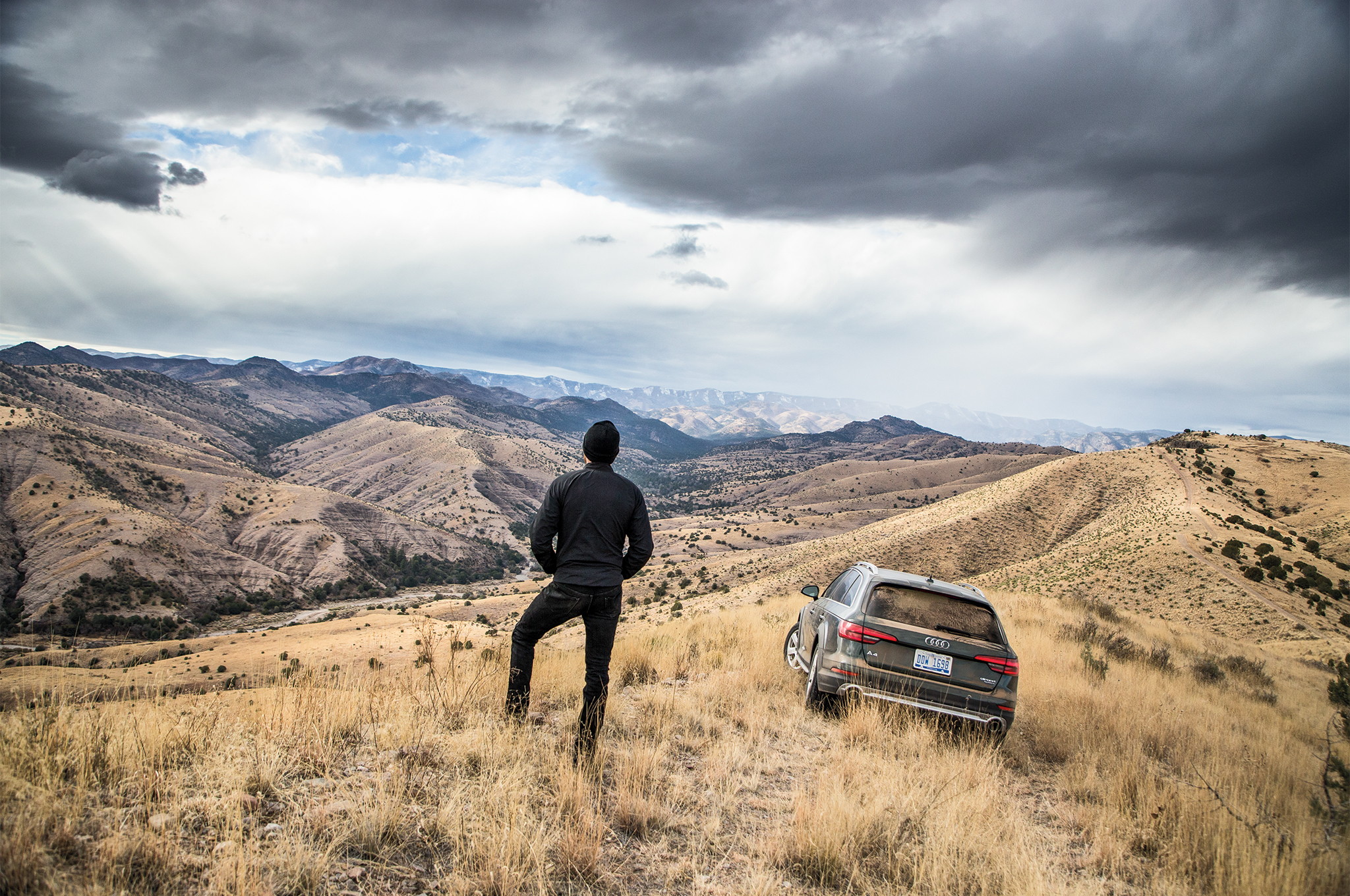 Steve Dobrott's voice is calm and comforting as it crackles over the radio. "It's a good day to get lost out here," he says. During his 24 years as the manager of New Mexico's Ladder Ranch, he's explored every inch of this 156,000-plus acre property. As he guides us to one of his favorite spots at the ranch's north end, his white Chevrolet Silverado bounces over rocks that we edge around in our Gotland Green 2017 Audi A4 Allroad. The wagon's ground clearance is good, but it's no truck. Gray rain clouds hang low, and thick fog obscures the rutted two-track, so we take it slow as we scan the horizon for bison.