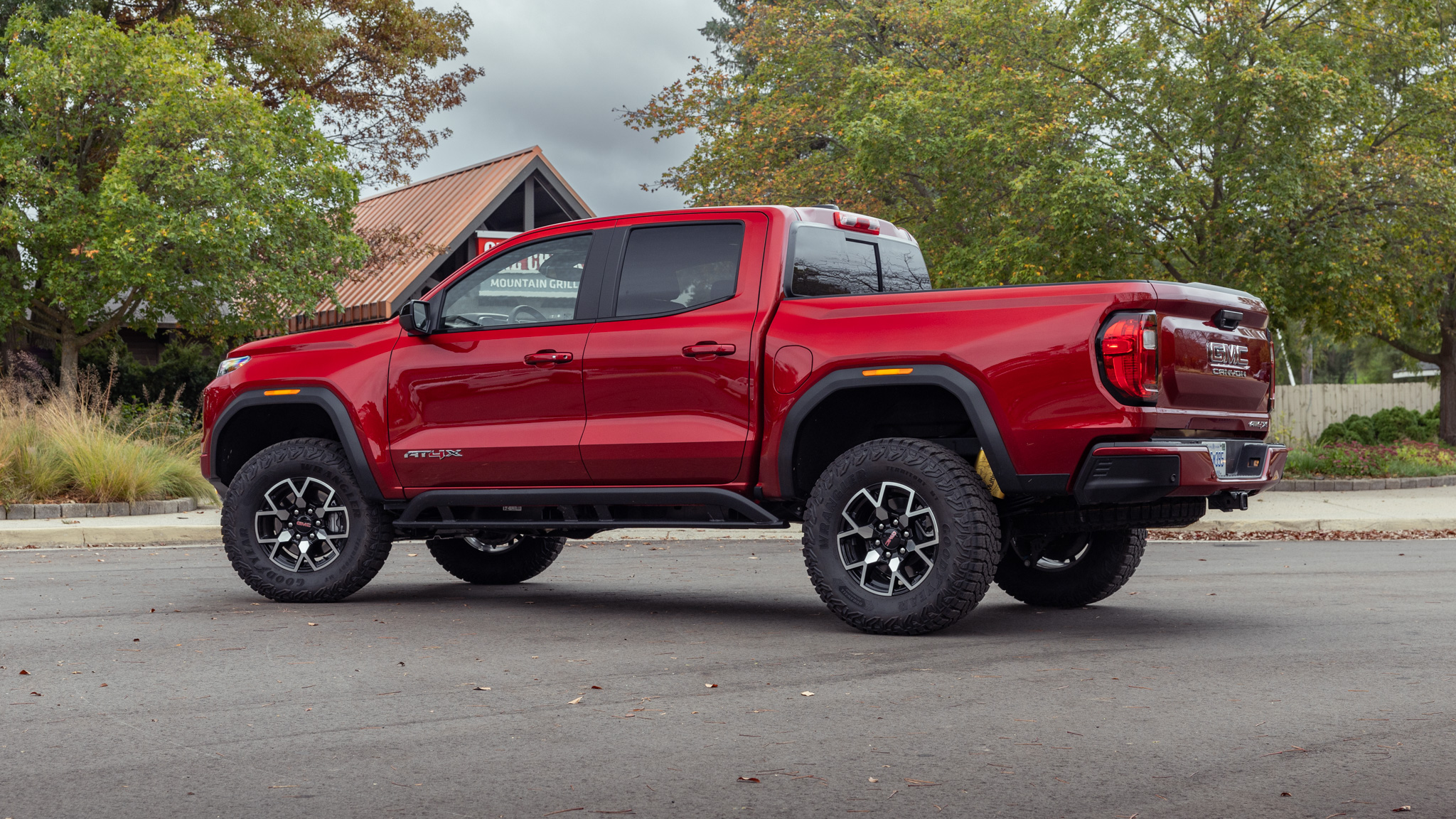 If you're choosing the Canyon AT4X over a Denali, AT4, or Elevation trim, you likely care about how the AT4X-specific tools work in the dirt. And it's no secret, the AT4X has some of the best. To start, this truck affords you the aforementioned 3.0-inch lift and the largest factory tire size in the Canyon lineup—LT285/70R17 Goodyear Territory MT (for Maximum Traction) tires. This marks a departure from the 31-inch Goodyear Duratrac and its Three-Peak Mountain Snowflake snow service rating.