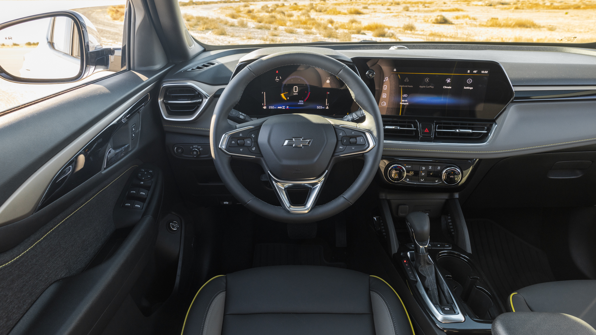 There's a new standard 8.0-inch driver's screen in the gauge cluster, but its execution isn't as great. Inches of unused real estate border the display, making it seem small. Push-button start is additionally standard for 2024, and for this Trailblazer Activ's active users, the first and second rows feature USB-A and USB-C ports. With the Convenience package, we also scored wireless charging and a 120-volt outlet in the second row.