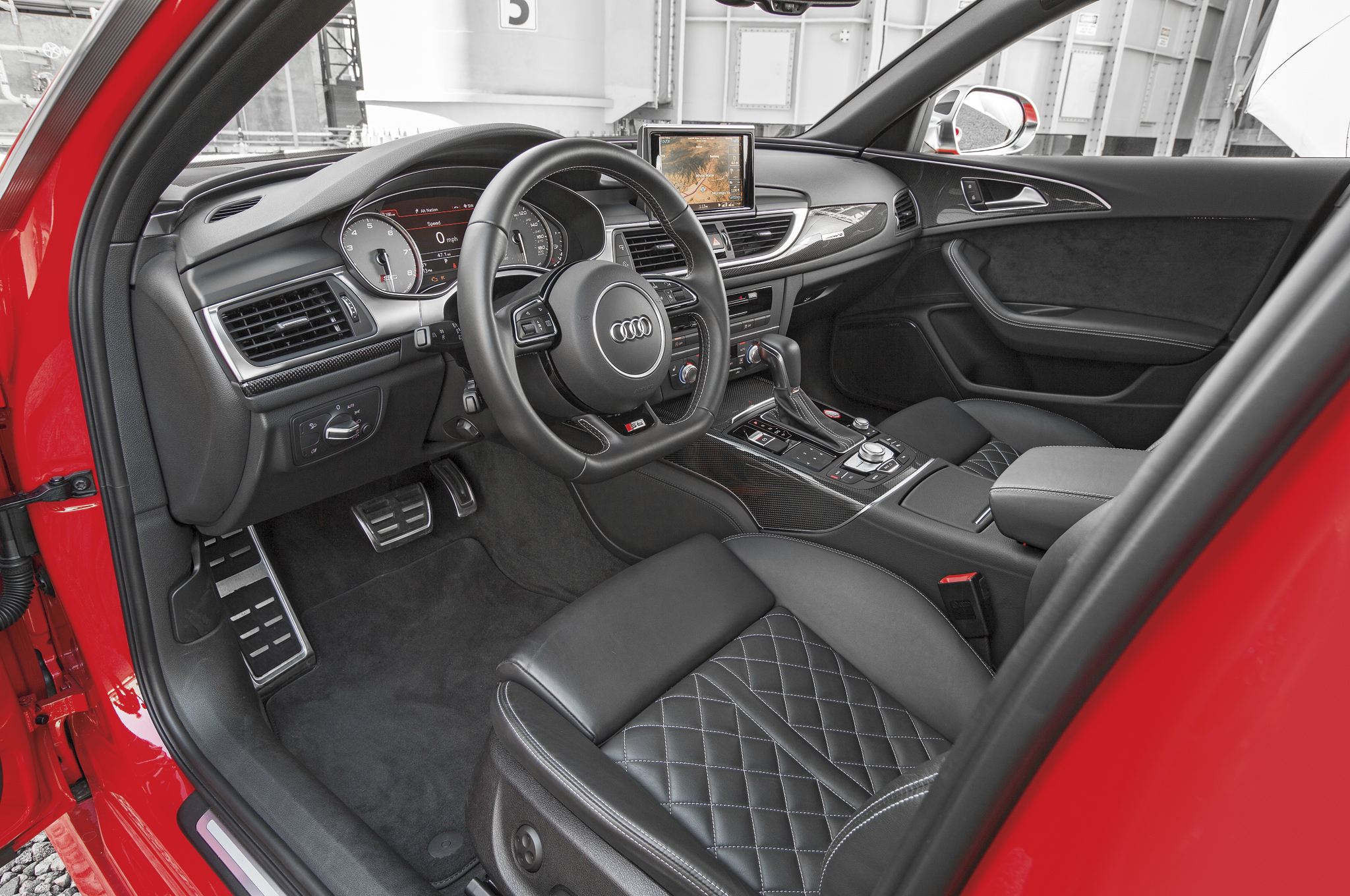 As you'd expect from Audi, the S6 differs from its two rivals in its drivetrain. The S6 sports a 4.0-liter V-8 with two turbos mounted right inside the vee under its hood. The V-8 sits in the middle of its rivals when it comes to power—444 hp and 406 lb-ft of torque—but its seven-speed twin-clutch automatic and all-wheel-drive system set it apart from the Cadillac and the Lexus.