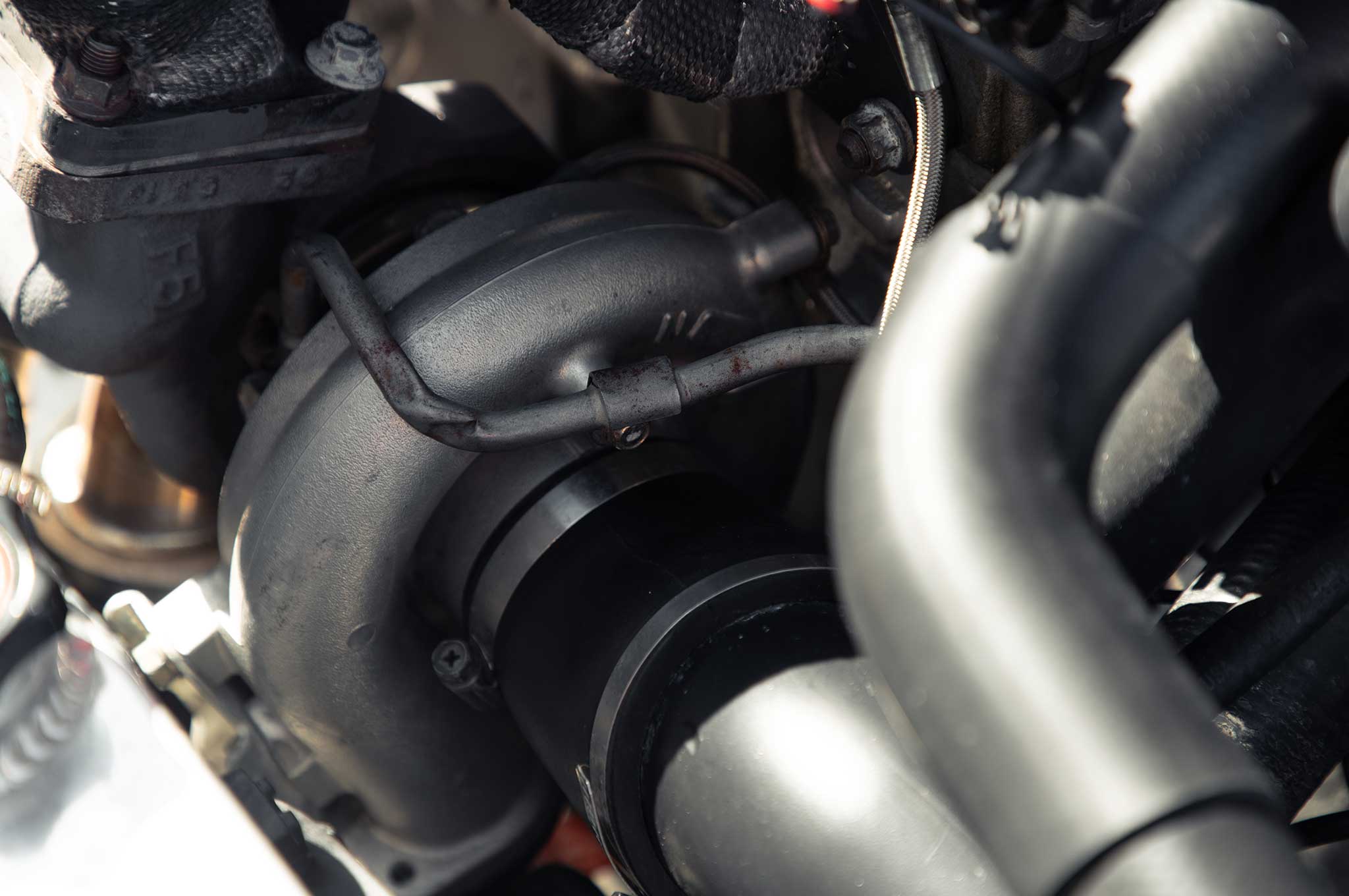 After seeing his Eclipse first-hand at our photoshoot, I'll be honest, it's not going to win any car shows with some wear and tear on the paint and body but all the right ingredients are there, from its carbon fiber lip kit, RAYS wheels and Bride seats, to the entire powertrain swap. What used to be the same sad front-wheel-drive NA 420a as the Fast & Furious car is now a turbo 4G63 machine with retrofitted AWD conversion. It's cars like these that remind everyone they should be giving major props to the DSM community, and also why we should maybe forget about that hundred shot of NOS blowing the welds on the intake.