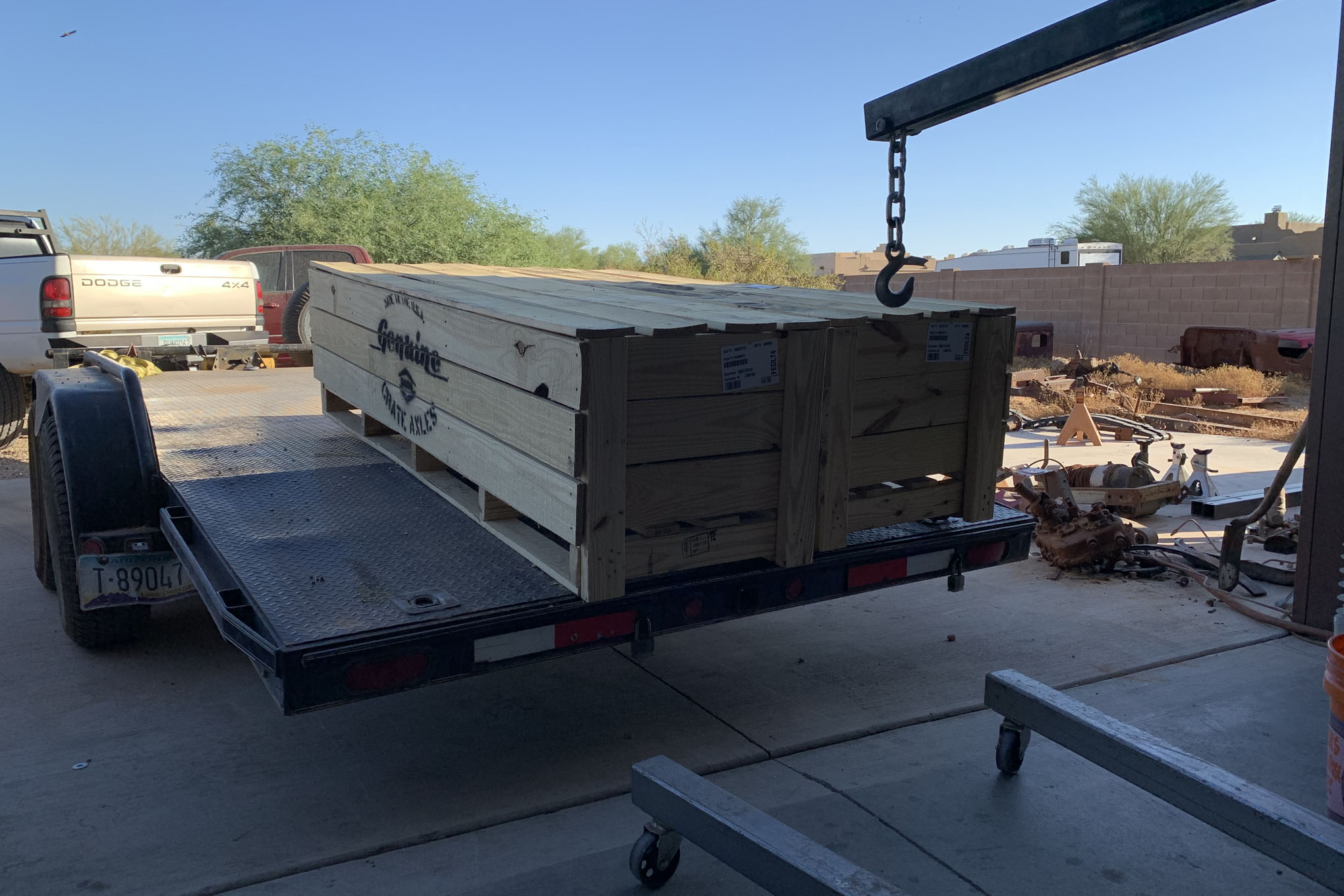 Part 5: We uncrate and get the axles roughly positioned.