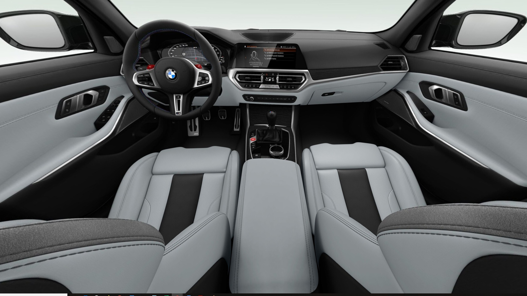 Inside, I chose a color-scheme that perfectly complements the car's exterior hue: Yas Marina Blue and Black. Yes, the blue and yellow scheme looks a bit like something you'd see on an athletic shoe, but in that way, it properly matches the garish yet intriguing style of the 2021 M3 itself.— Greg Fink