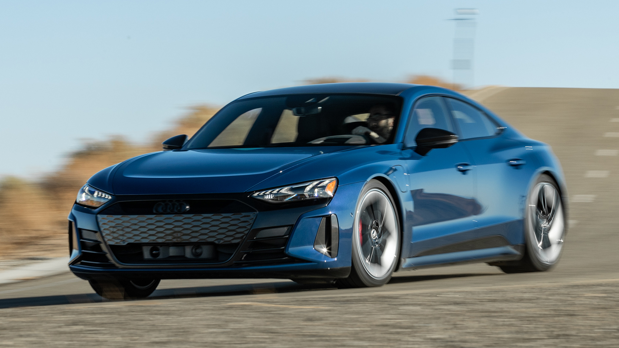 Here comes another electric railgun, this one weighing in at 5,151 pounds. But its mass is no match for the 637 hp and 612 lb-ft of torque the Audi RS E-Tron GT has on tap when you engage "over-boost" mode (by firmly pressing the brake pedal, then flooring the accelerator. This causes the power meter needle to swing past 100 percent. You gotta love a car that gives you more than 100 percent …