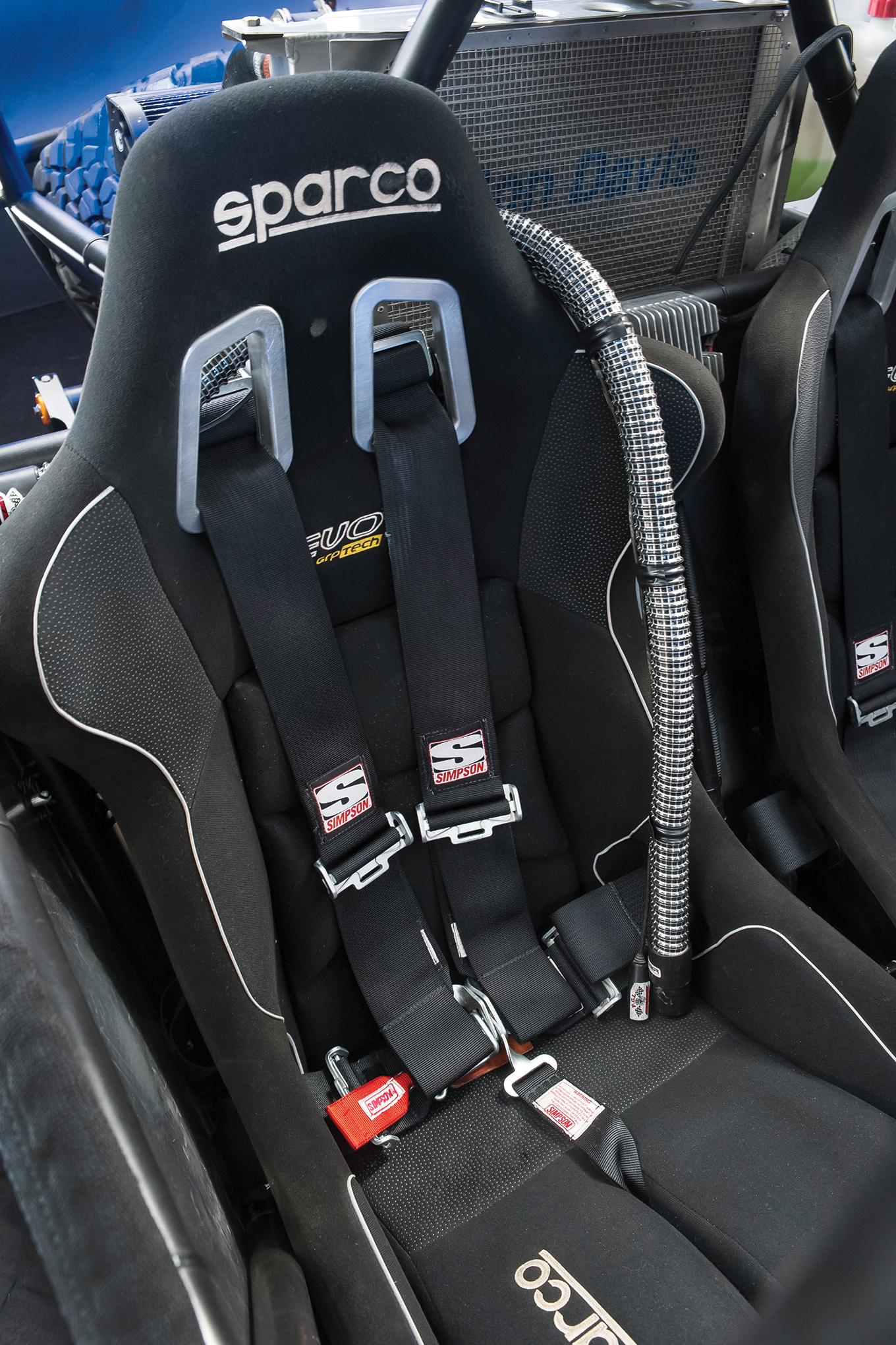 Desert races are long and grueling, so this RZR uses Sparco Evo II seats with Simpson 3-inch, 5-point harnesses to make the drive a little more comfortable.