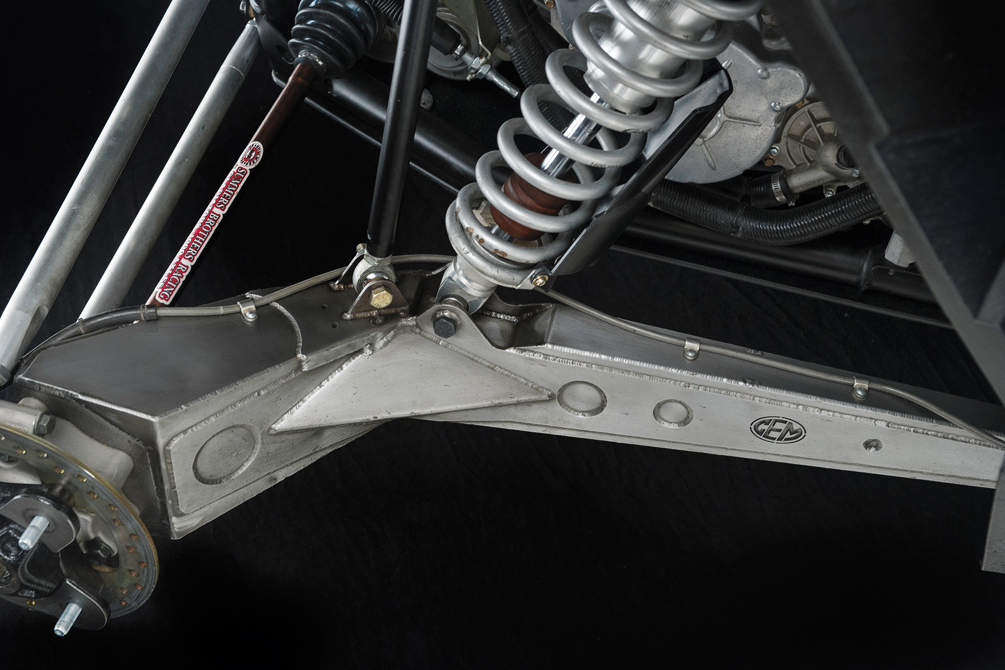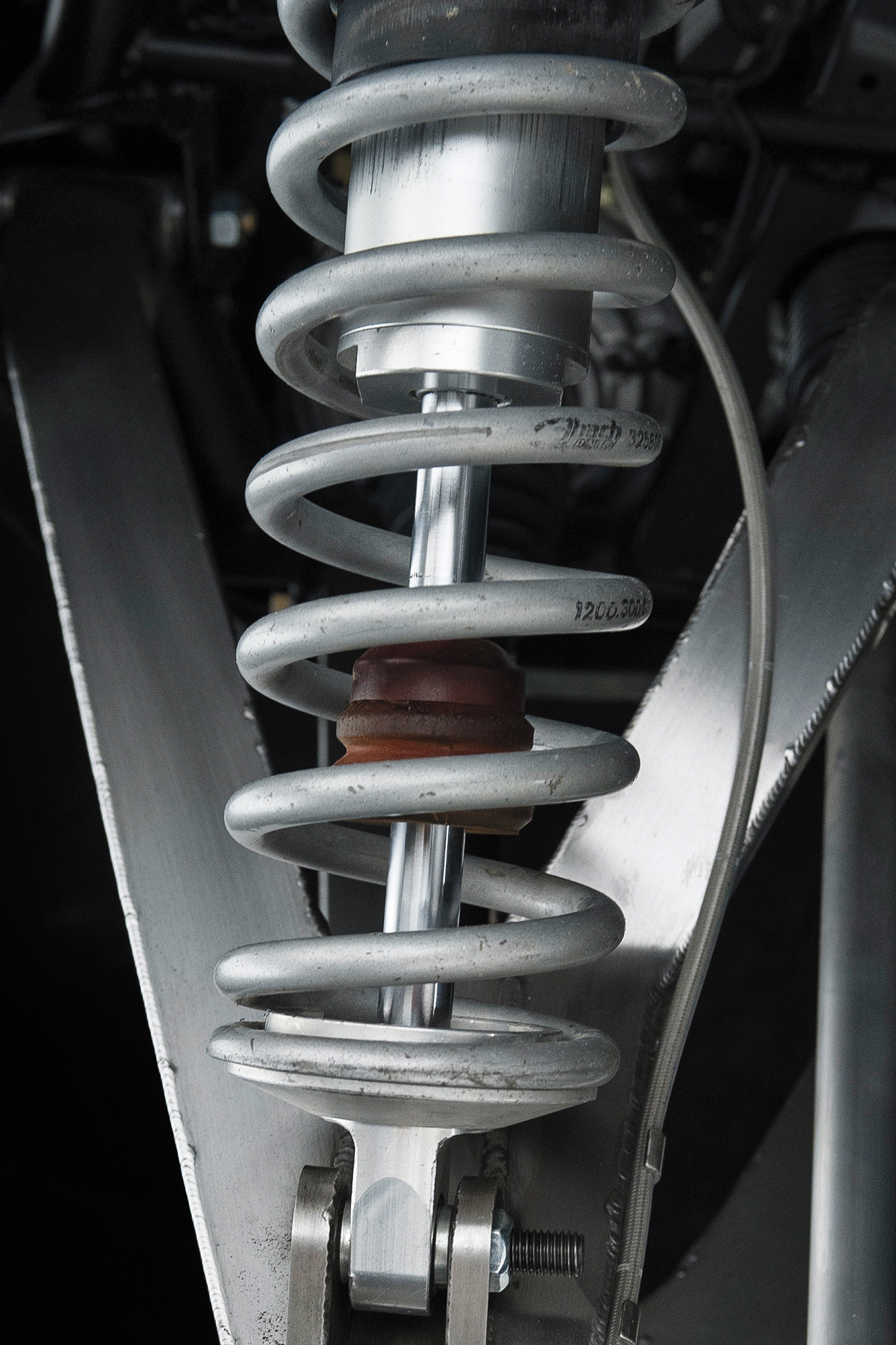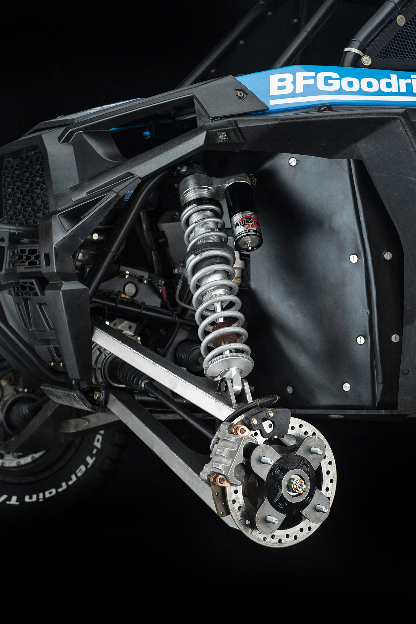 The Jagged X Racing A-arms were fabbed in conjunction with Cutting Edge Manufacturing, as were the hubs. A set of Walker Evan 2.5 piggyback reservoir coil over shocks provides a stable ride.