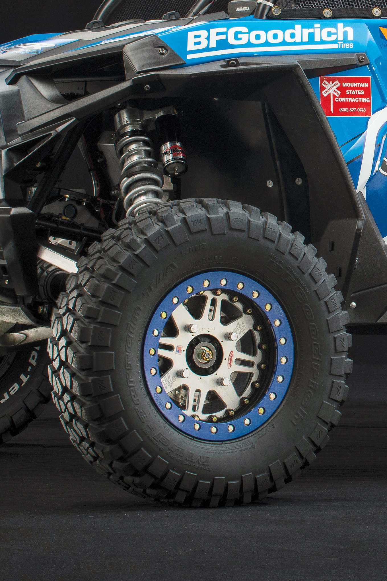 Wheels and tires are another area where parts availability has taken off for UTV’rs. The custom 15x6-inch OMF Performance beadlock wheels are downright trick as they feature three-piece billet centers and have inner stiffening rings. The tires are BF Goodrich KM 2 Mud Terrain (30x9.50x15) but we know that BFG now produces their Baja KR2 for UTV’s as well.