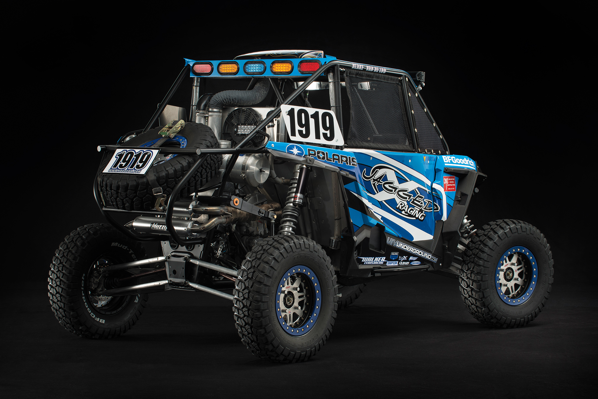 Then there’s the cars like Brandon Schueler’s Jagged X Racing 2014 Polaris XP 1000. Built entirely at Jagged X Racing of Phoenix, AZ., this RZR has undergone extensive modifications to make it legal to run in the Pro Production UTV class for both SCORE and Best In The Desert racing series. The frame is constructed using the required structural components (i.e. the entire main center section) from original Polaris Chassis as per class rules. The stock cage is cut away and another one built by Jagged X using all Chromalloy tube and plate to their specifications.