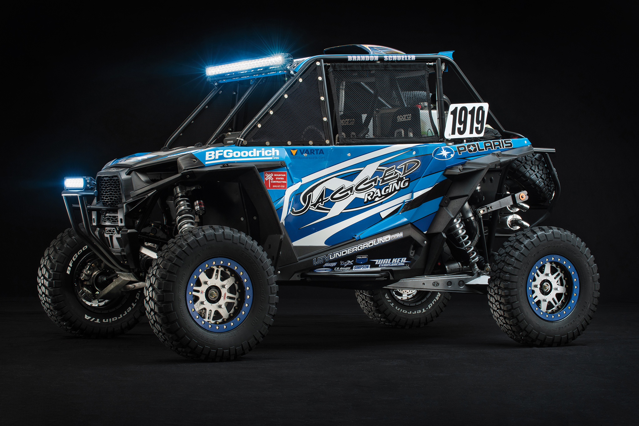 This car is the 5th Generation of RZR that Jagged X Racing has built specifically for desert racing and all are built to compete at the highest level. They’ve succeeded as with Schueler as driver, he has 6 Best in the Desert Championships and over 20 wins since 2007 to show for it. Jagged X has had a car on the podium in every BITD Series Championship since the UTV class inception. They won the SCORE UTV championship in 2013 and was second in 2014. Jagged X driver Matt Parks also earned the Toyota milestone award in 2013 and 2014 for completing every mile in the SCORE series.
