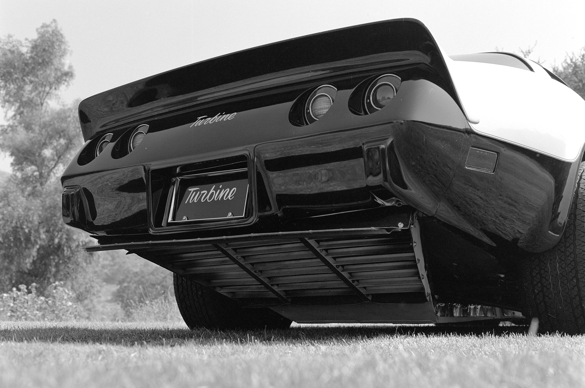 Granatelli began the process with a brand-new 1978 Vette. He described the modifications as “straightforward,” but they weren’t easy. To make room for the turbine he removed the stock front clip and replaced it with a bare fiberglass shell, under which he built a new subframe. Granatelli also constructed “a flat box that covers almost the entire underside of the car” said Frey, to handle the huge amount of airflow coming from the engine. “If eight turbocharged Indy Cosworth motors were run at top speed, they would produce the same amount of exhaust gas flow as the turbine,” Granatelli told Frey.