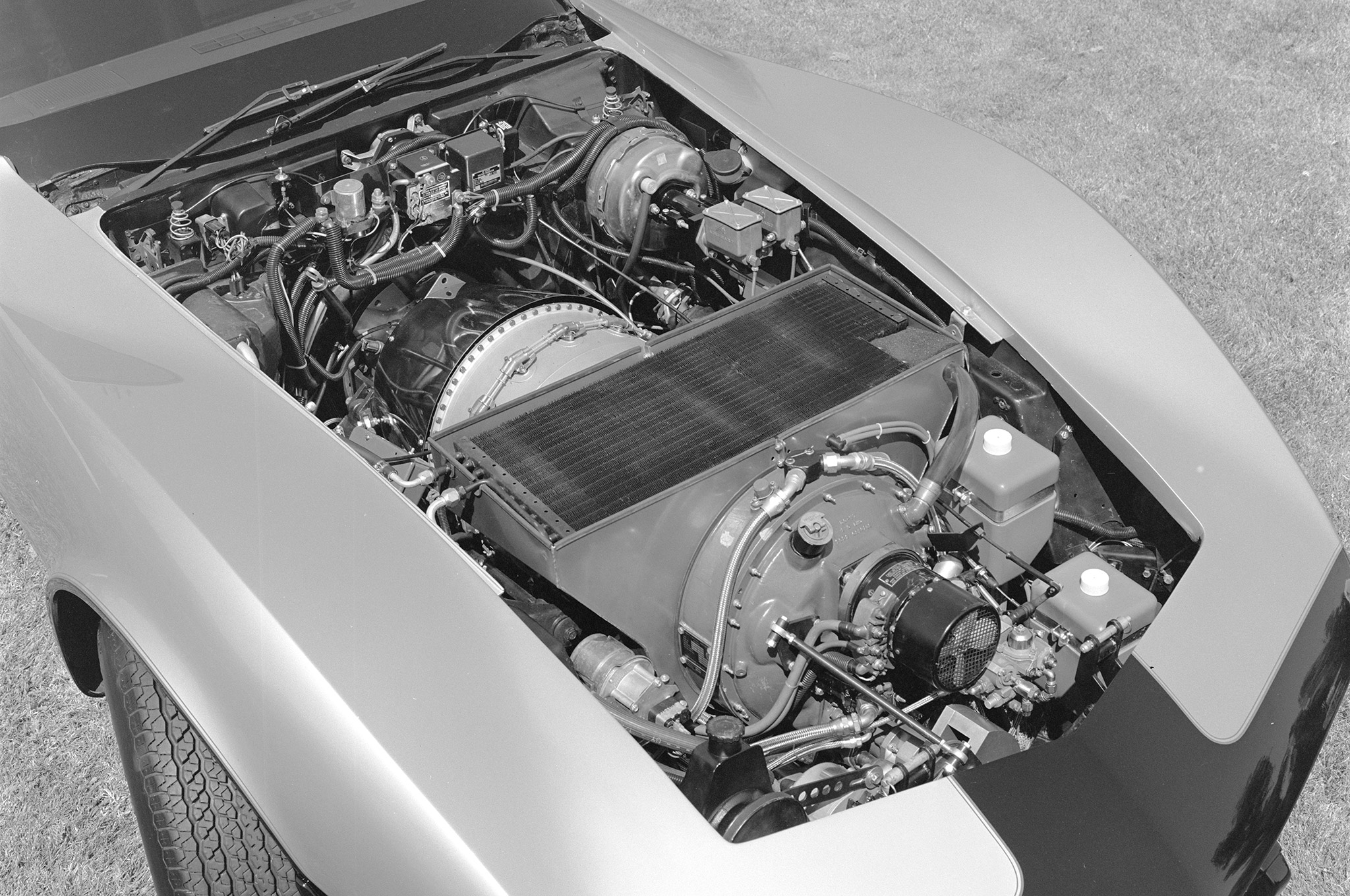 A Corvette was deemed the most suitable platform for such a beast because “its high performance capabilities were a known factor,” wrote Frey. Also, the car’s long nose would accommodate the Pratt and Whitney ST6B turbine engine, which was nearly three times as long as a conventional V-8.