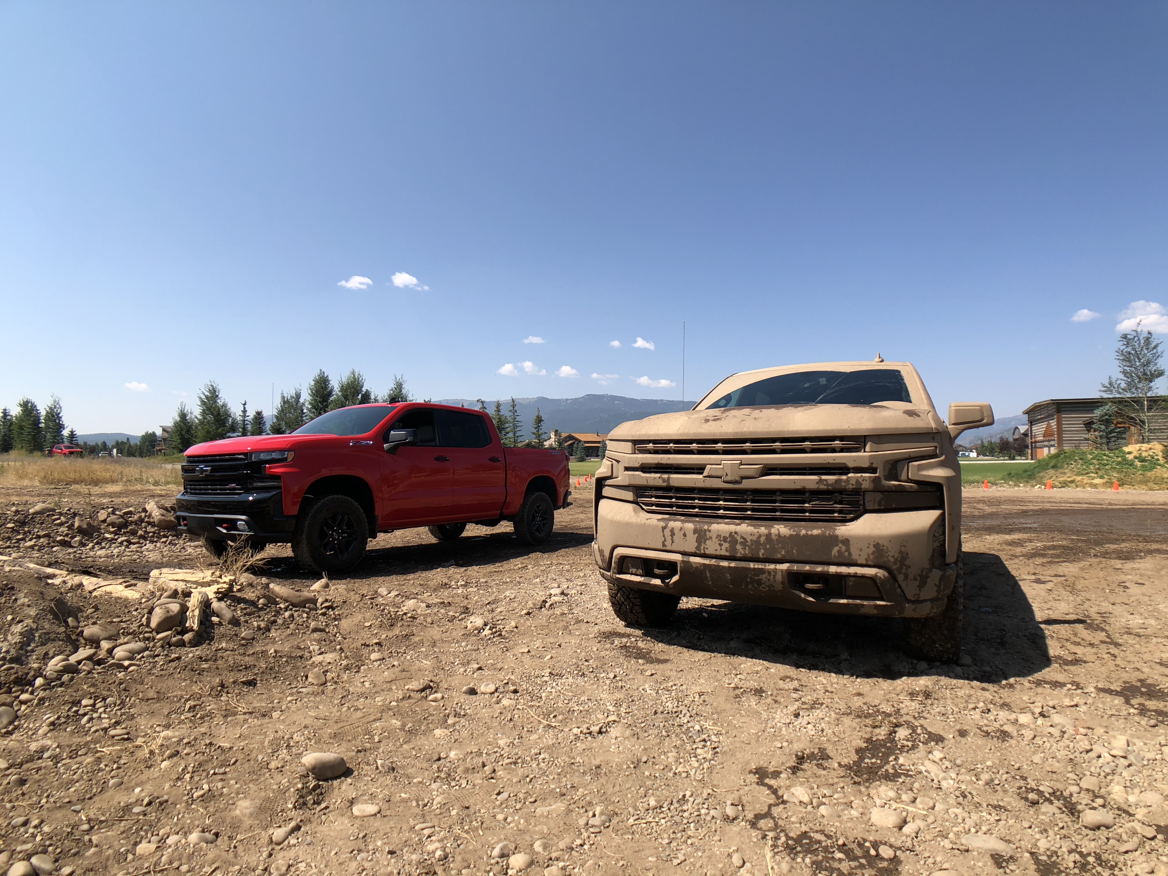 Finally the big day has arrived and we’ve been allowed to slide into the driver’s seat for a quick first drive of the newest generation Silverado. Available to sample were High Country, LTZ, RST, and Trail Boss trims equipped with either the 5.3L V-8 and eight-speed transmission or 6.2L and 10-speed (not present were the 2.7L four-cylinder or 3.0L diesel engines). Our highway route consisted of about 100 miles of pavement which included steep mountain passes and winding two-lane highway, all at elevations about 6,000 feet near the resort town of Jackson, Wyoming. To sample the truck’s towing acumen Chevy saddled both 5.3L and 6.2L equipped trucks with trailers loaded to 6,000 pounds (or about 2/3rds of their roughly 9,000-pound rating). And since sticking to tarmac wouldn’t do the Trail Boss justice, there was an off-road course complete with a log crossing, loose hill climb, rock crawl, and a mud pit.