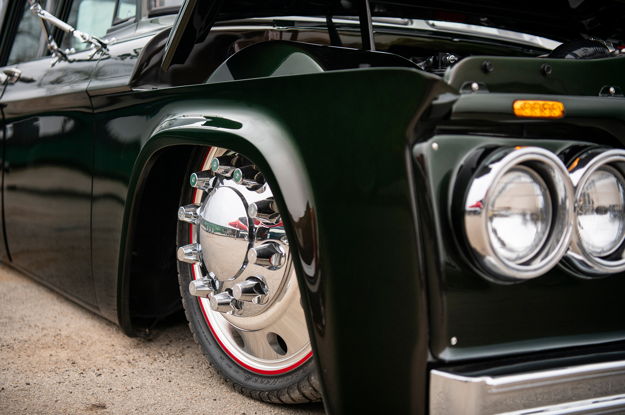 The dualie's body drops over a set of 22-inch American Force wheels. Check the low-profile redline tires—another cool touch for this wicked ride.
