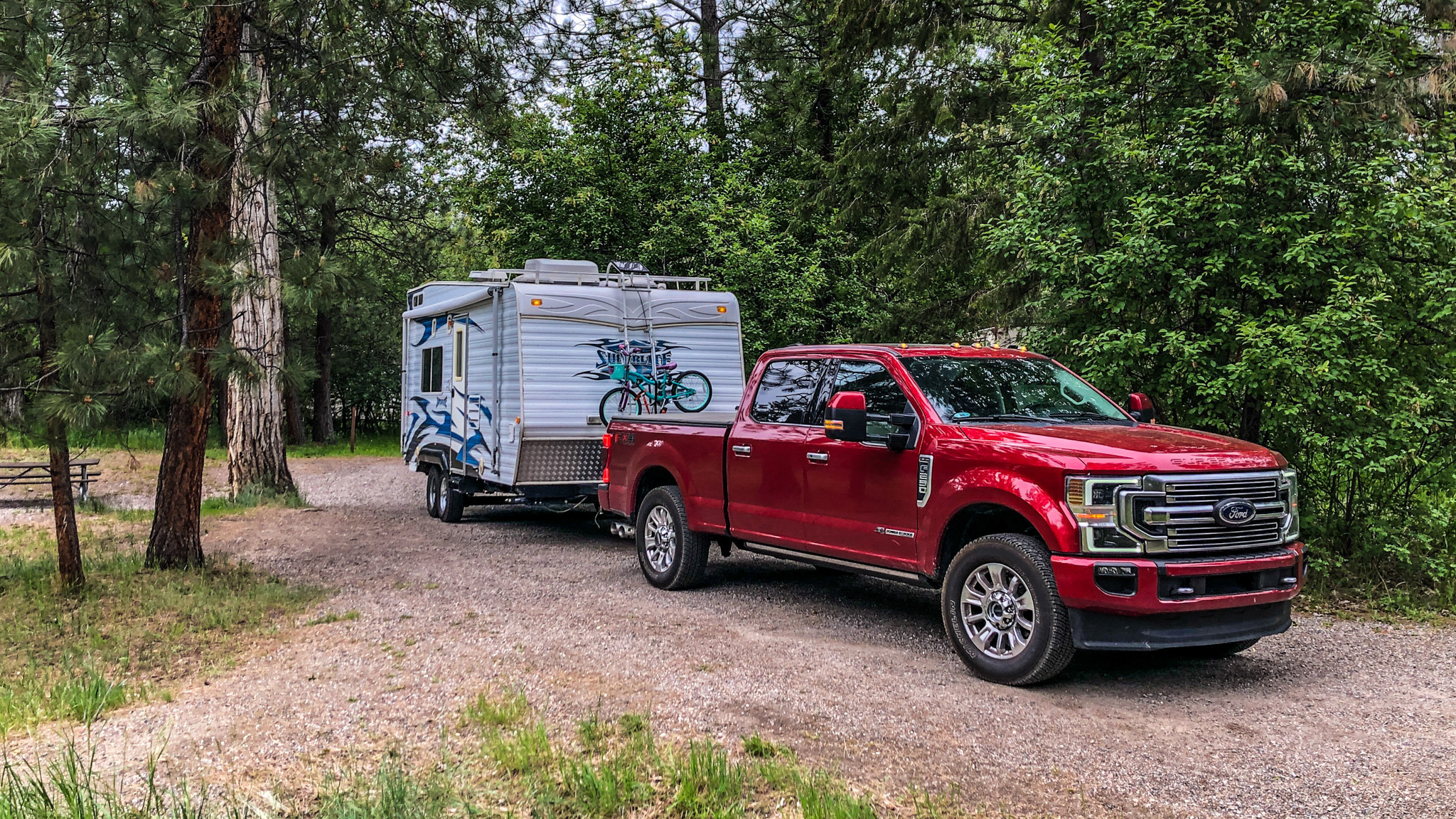 In both cases, the 2020 Ford F-250 Super Duty proved to be an extremely competent tow rig. We never noticed anything close to a lack of power and could easily pass slower traffic while pulling up grades as high as 8 percent. On the backside, engaging the truck's exhaust brake would easily slow the truck and trailer without the need to excessively utilize the service brakes. We've always appreciated that Ford outfits its entire F-Series Super Duty lineup with the same drivetrains, which makes towing lighter (relatively) trailers with an F-250 an effortless task.