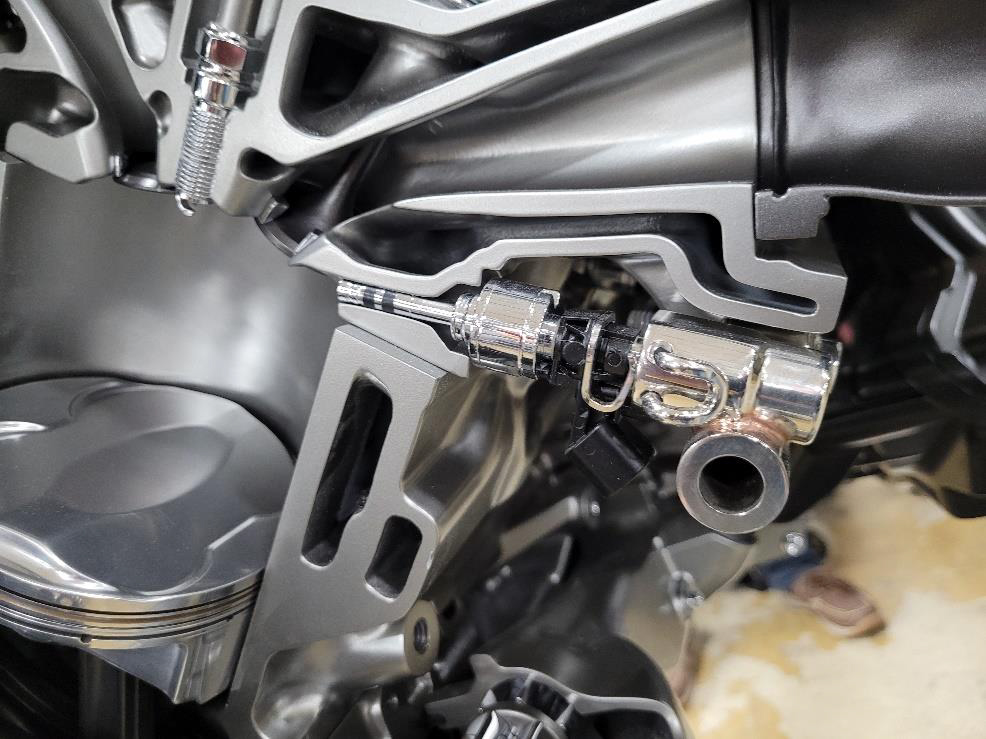 Another IndyCar racing-inspired first for GM is placement of the fuel injector down underneath the exhaust manifold pointing up at the downward-facing intake runners for optimal air-fuel mixing. Unique cylinder-head water jackets and heat shields keep the injectors cool. Injection pressures of 1,450-5,076 psi are 75 percent higher than those used in the LT2 and LT4, which enables the high compression ratio that delivers increased power and torque. The injectors each feature six laser-drilled holes and can flow between 12.9 and 24.0 grams/second.