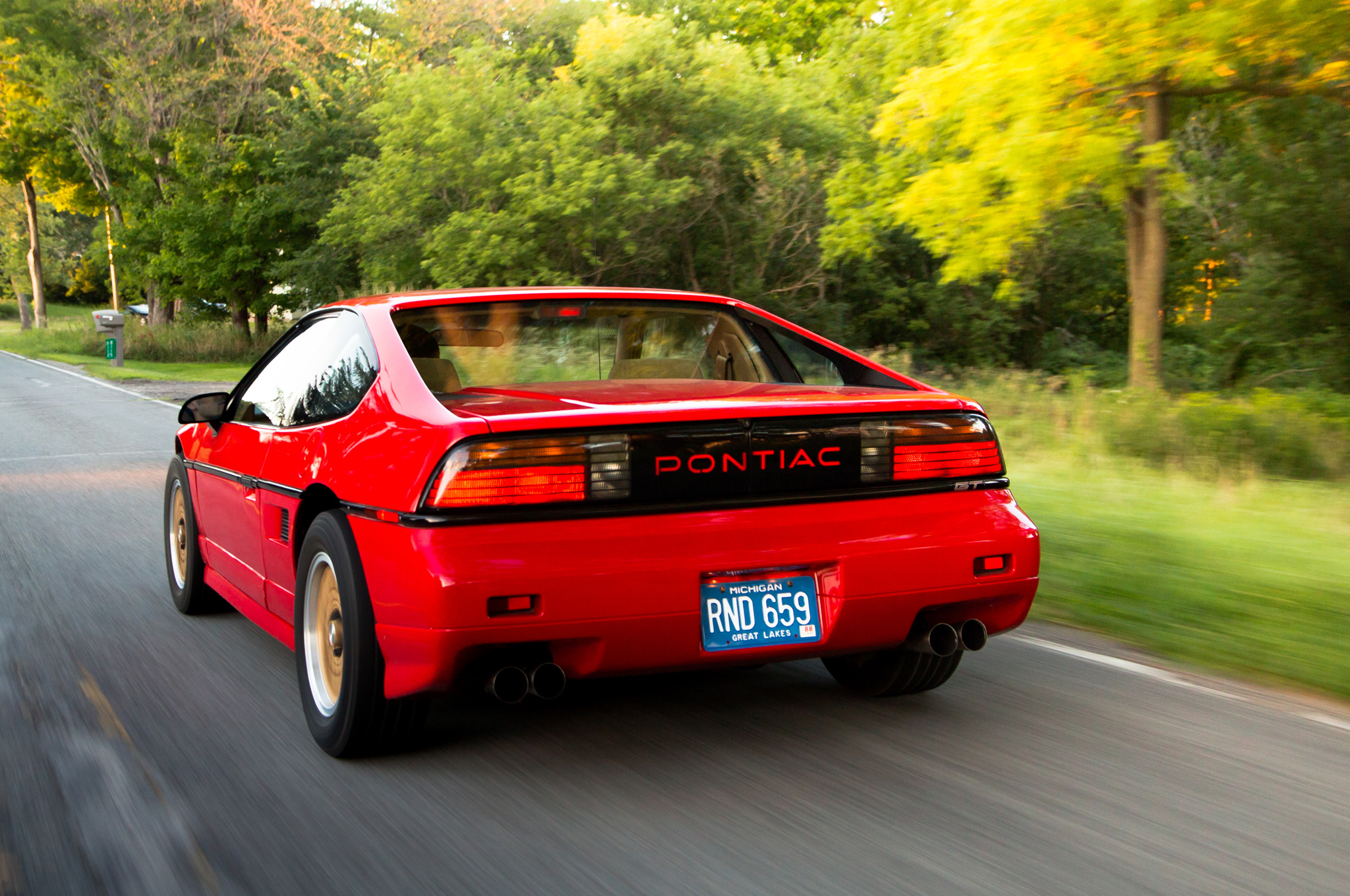 Not everything is peachy. The wheezy 2.8-liter, 135-hp V-6 riding behind us loudly bemoans the fact that it didn't wind up in a Chevrolet Celebrity like most of its brethren. The plastic exterior panels join the cacophony, rattling loudly as I bash through rutted curves. But with the 1988 Fiero GT, Pontiac at last had a proper sports car.