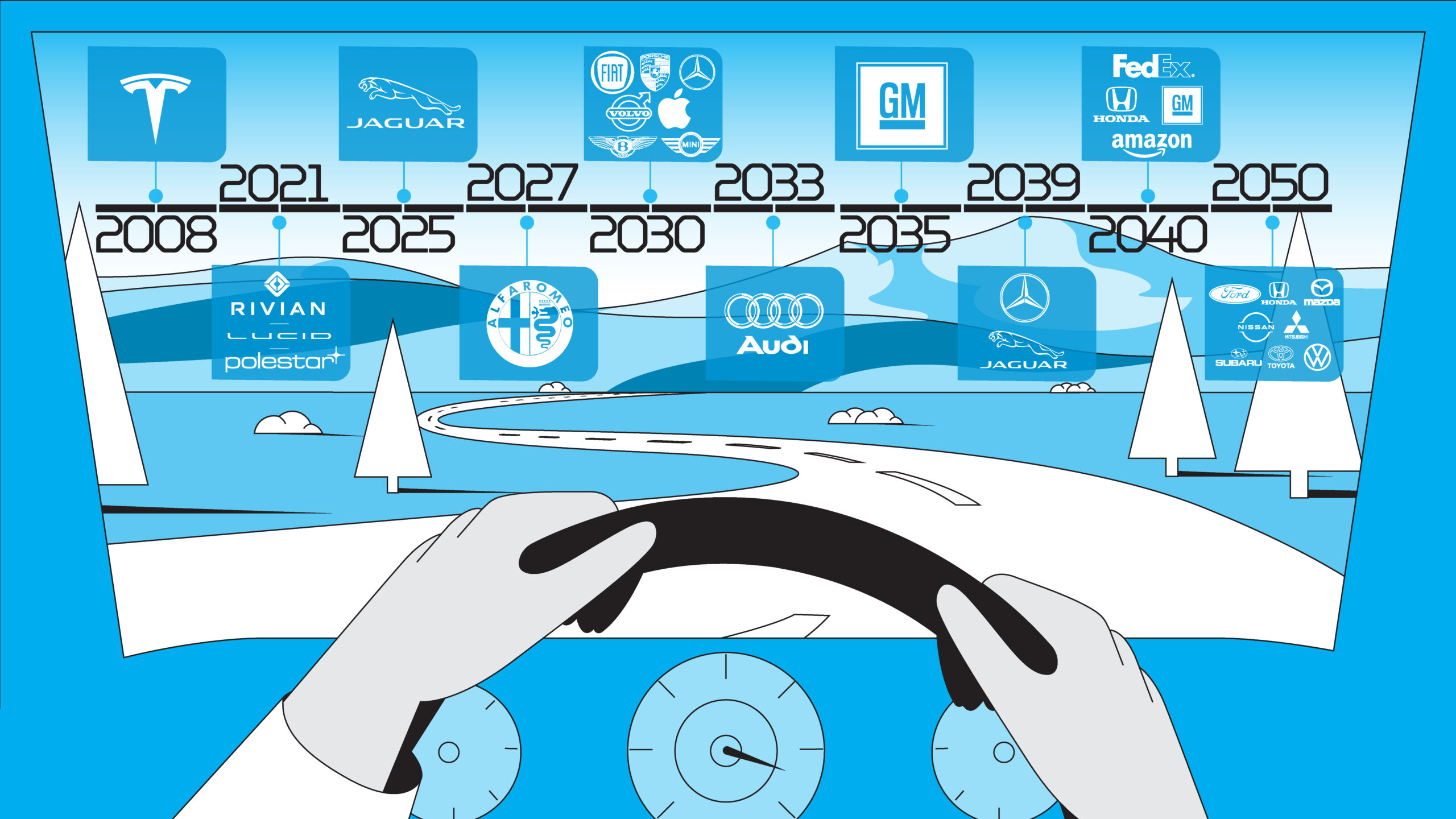 A timeline of major brands and their plans to go all-in on EVs and/or reach carbon neutrality.
