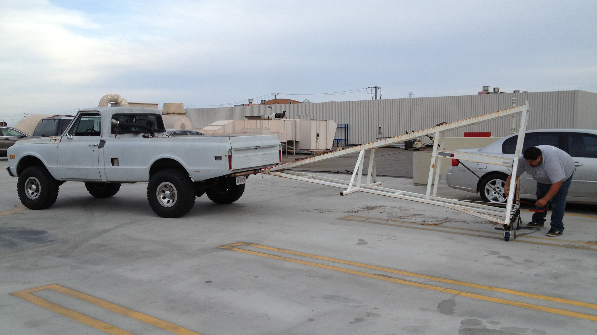 Rednecking it up at the Motor Trend corporate office with an RTI ramp and a classic Chevy C20 pickup truck.