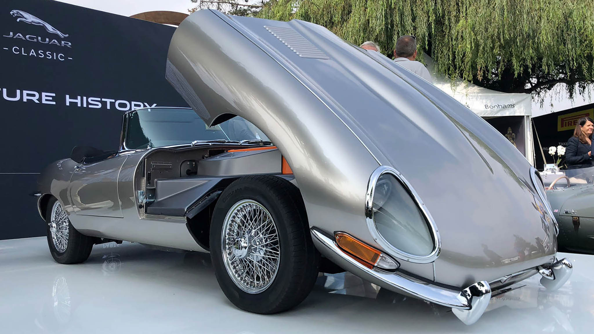 Still, I really hadn't expected the all-electric E-type from JLR's Reborn program announced at Pebble Beach. With its lithium-ion battery pack and 220-kW (290-horsepower) electric motor, the electric Jaguar roadster (or coupe) accelerates as briskly as a gasoline-powered E-type, has a quoted range of 170 miles, and manages to maintain the original's weight distribution. The reversible removal of a boat anchor-like 900 pounds of conventional engine and gearbox allows for a lot of batteries to go in. It feels like a fast, modern electric car but looks and drives like a vintage E-type.