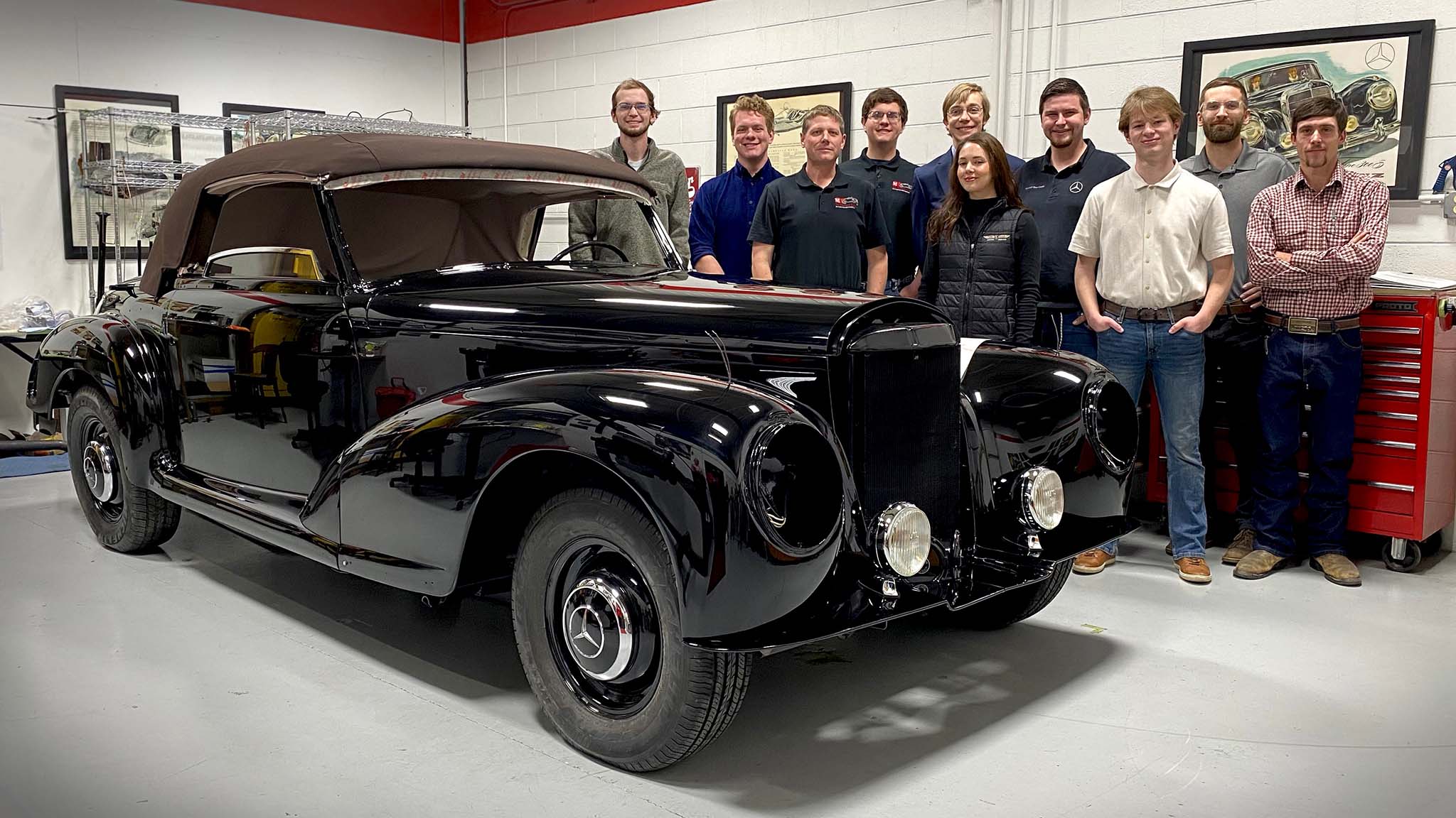 The 1953 Mercedes-Benz 300 S Cabriolet—and the students—came from McPherson College in Kansas, home to the nation's only four-year degree program in automotive restoration. We've visited McPherson before, and what we saw there was astonishing in its own right. But the journey from a remote campus two hours west of Topeka to a spot on the Pebble Beach podium proved to be even more so. We talked to McPherson students and staff, as well as Pebble Beach judges, to learn more about how it happened.