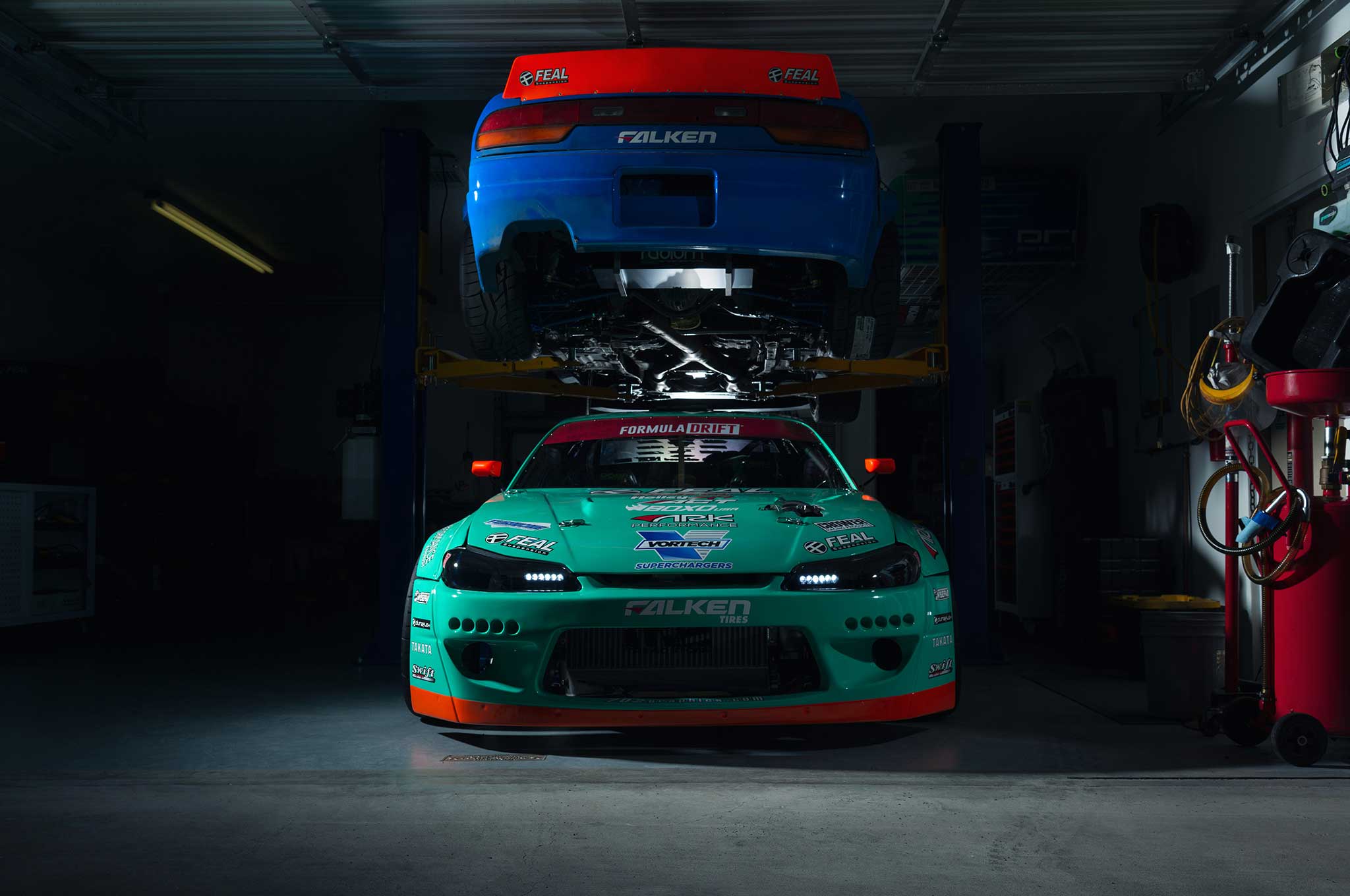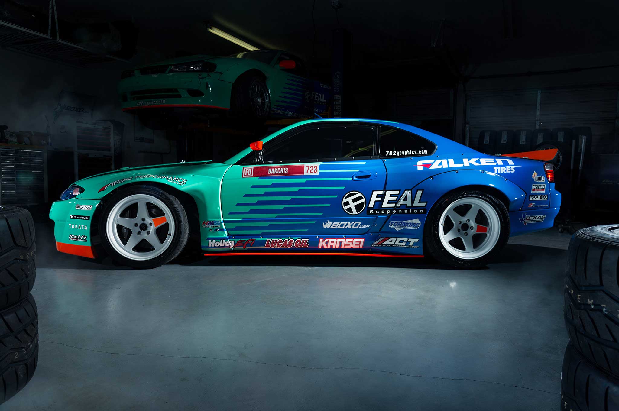 Formula DRIFT driver Odi Bakchis shifts S-chassis this season to an S15 with a pissed-off supercharged 7.0L V-8 under the hood.