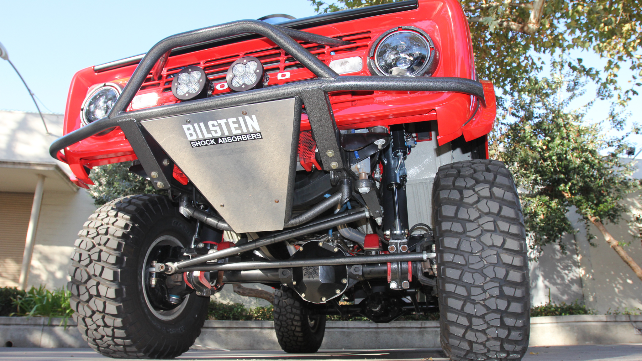 When it was introduced in 1966, the Ford Bronco's front coil spring design was something unique in the market space. Rather than a complicated suspension link arrangement, Ford employed a simple radius-arm design in which diamond-shaped perches on the axletubes were sandwiched between two C-shaped bushings by a single suspension link that connected the axle to the frame. A crossover steering system sent the drag link from the steering box pitman to the passenger side of the tie rod and a track bar connected the frame to the axlehousing to keep the steering geometry in line as the suspension cycled. The design offered an improved ride over leaf springs and did away with the bulky shackles or spring-eye mounts that otherwise cluttered up the front end of Bronco's front leaf-spring-equipped competitors. Out back, a simple leaf pack set atop the rear axle provided a tried-and-true means of locating the axle and holding up the rear. Although scaled up to accommodate the larger body and frame, the second-gen Broncos were relatively the same suspension design as the classic early Broncos, but in 1980 Ford introduced its TTB front suspension design that did away with the solid axle altogether in favor of a two-piece axlehousing that allowed independent front wheel travel. Once again, coil springs were found up front, with leaf springs bringing up the rear. This would be the final design for the Ford Bronco and it ran through the model's end in 1996.