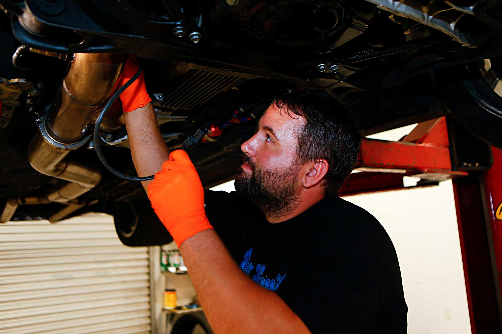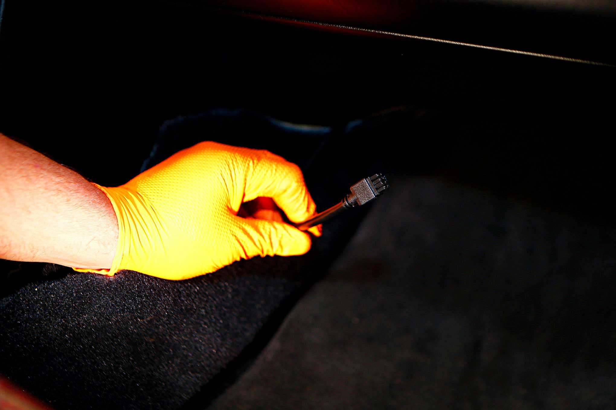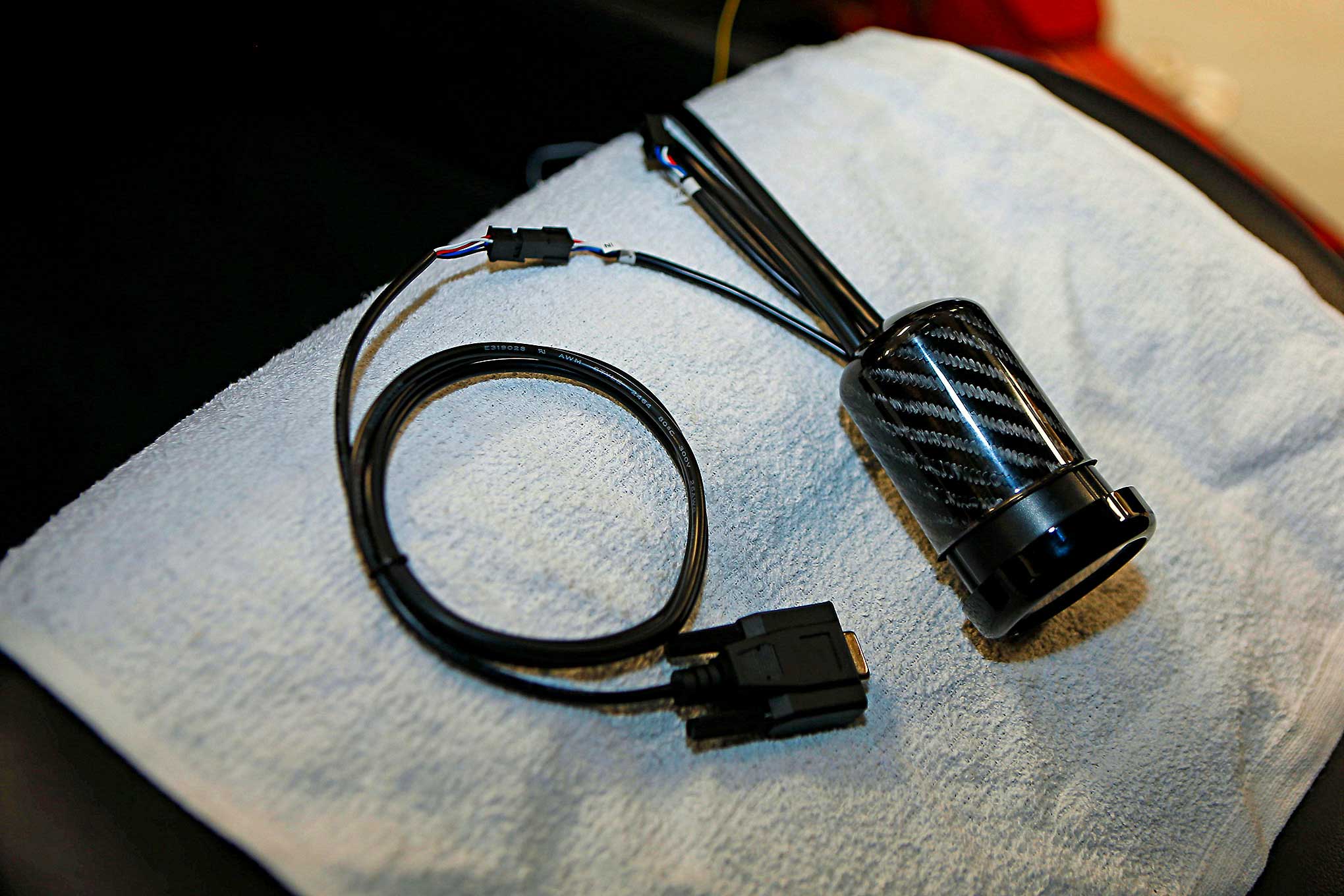 After installing the sensor, Steven Harris of Coastal Chassis Dyno fed the cable through to the interior.