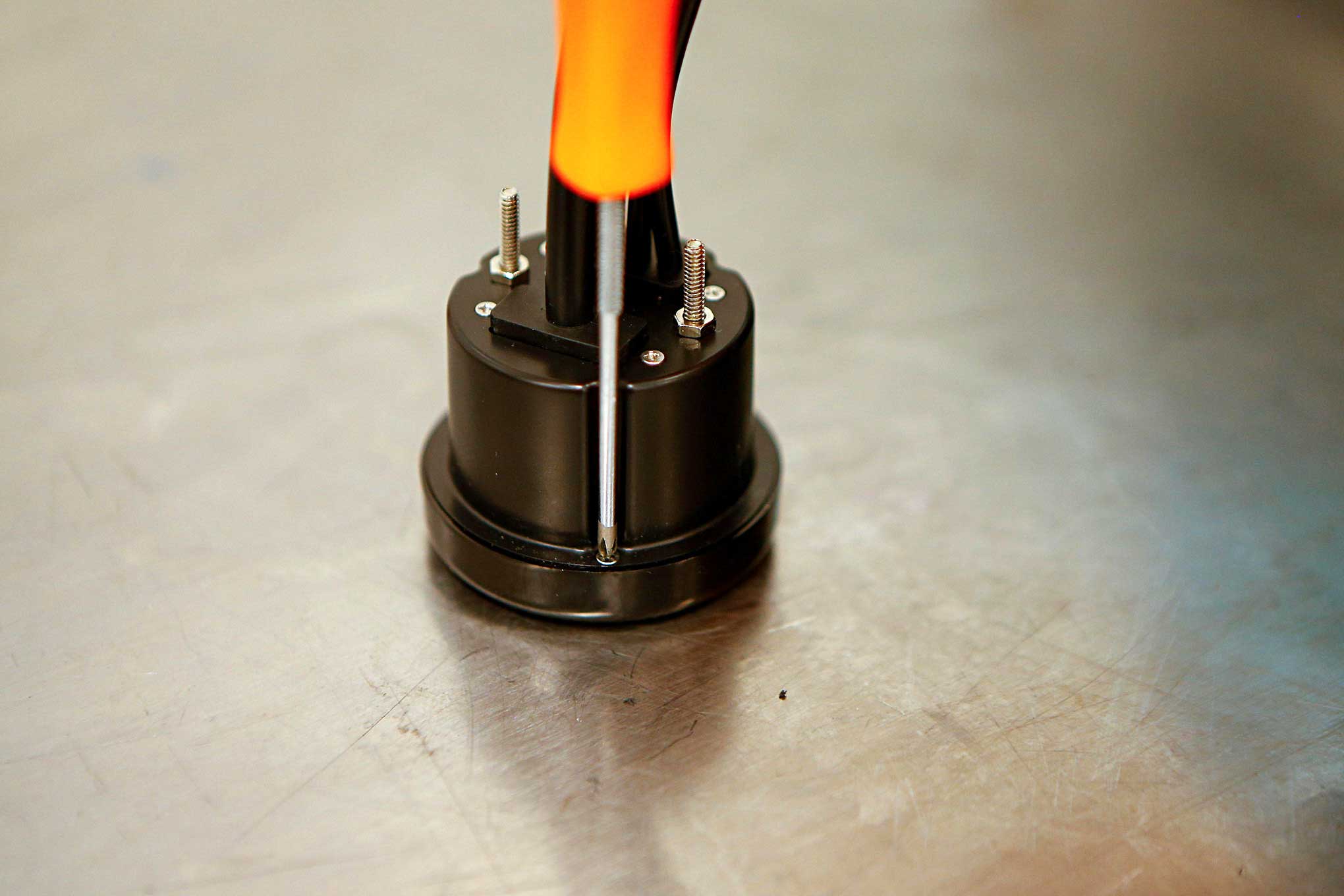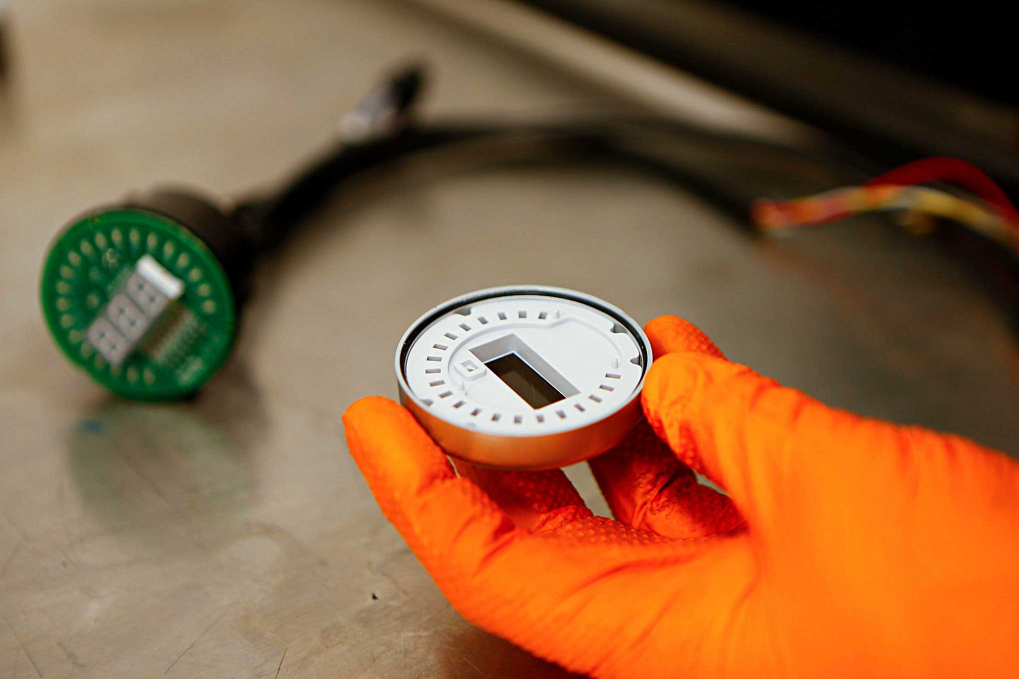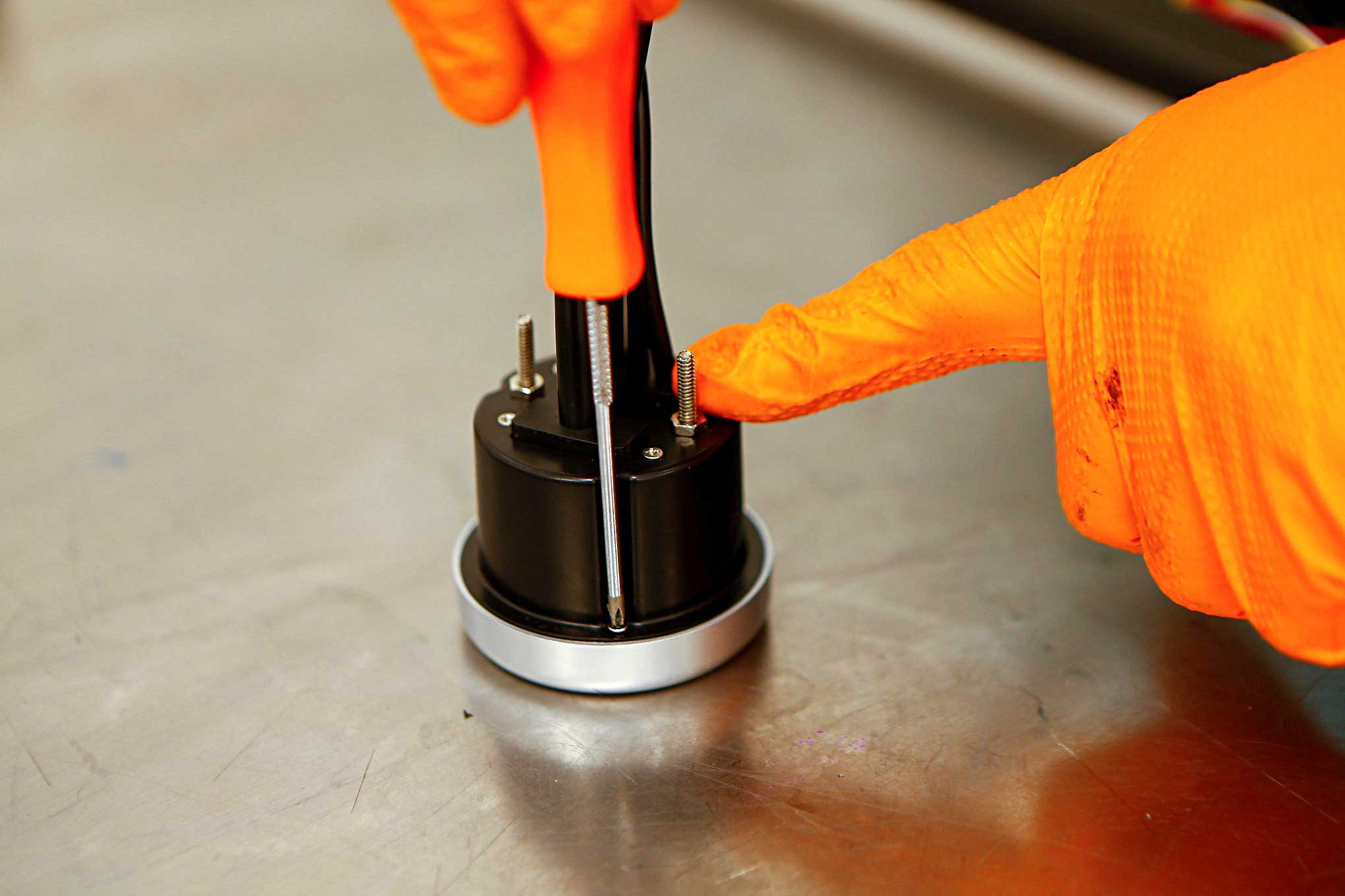 Harris connects the Bosch sensor cable wiring on the back of the gauge.