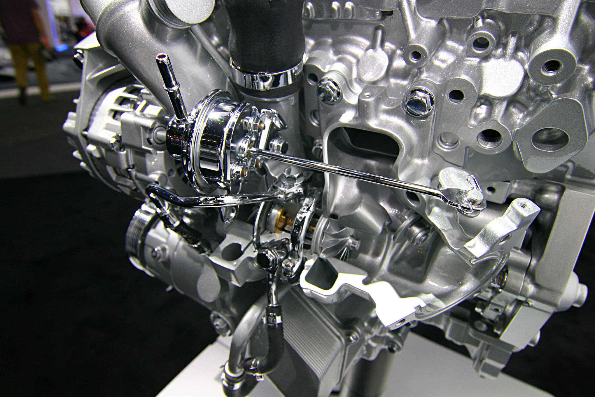 Proper boost management doesn't get simpler than the internal wastegate. Here, a swing arm that's activated by a boost-referenced actuator opens and closes a small flapper valve located inside the turbine housing. When opened, exhaust gases are diverted away from the turbine wheel, slowing it down and limiting boost pressure.