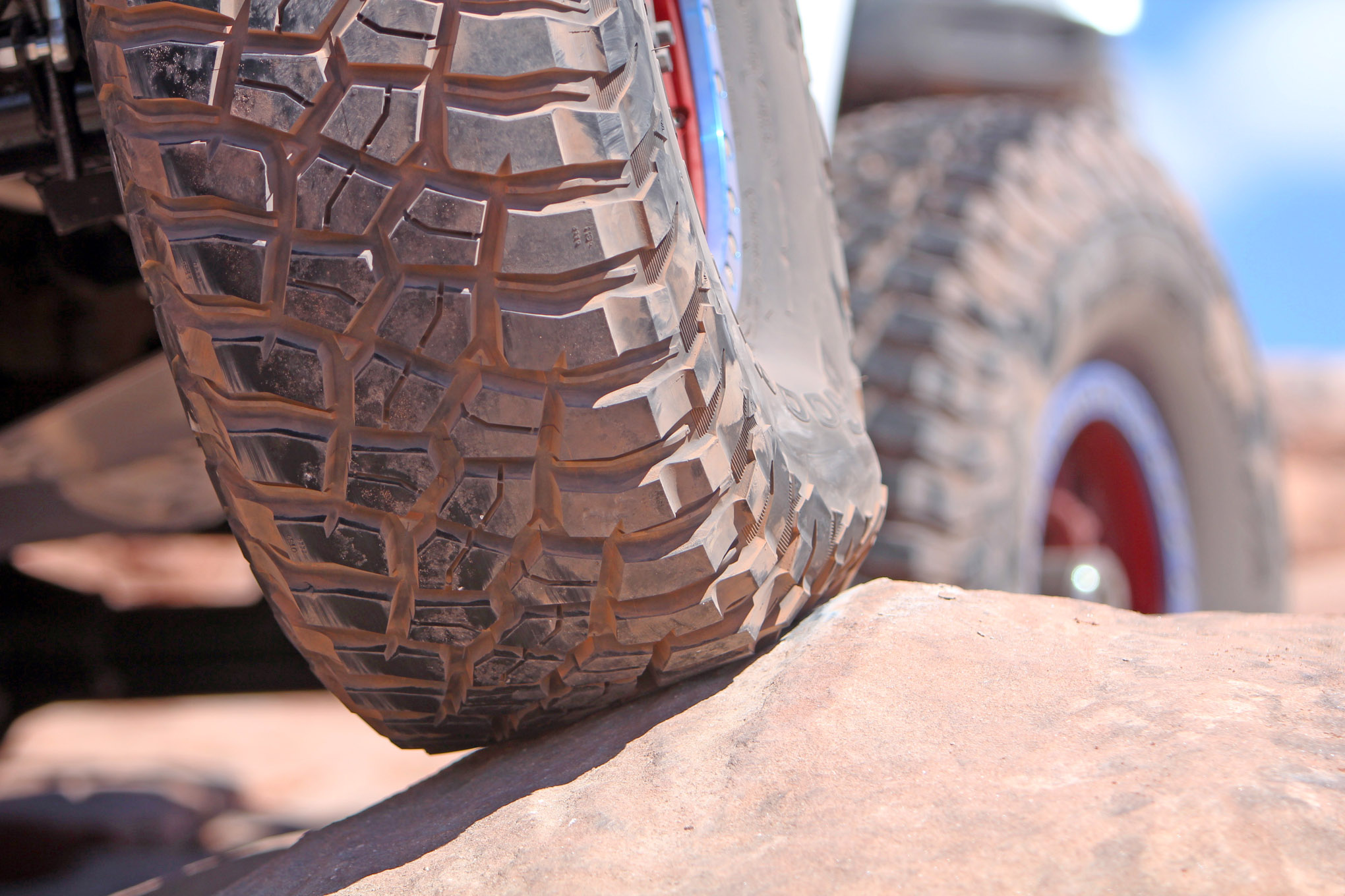 The jagged metamorphic rocks of Tucson were some of the first rocks we rolled over with the KM3s. Though rough around the edges, Tucson geology can take on a polished look much like that of a billiard ball. No sweat for these tires. The rubber compound appeared to be softer than that of previous mud-terrains and suction-cupped itself to even the slipperiest of boulders like the feet of geckos. BFGoodrich calls this the Krawl-TEK compound and claims the KM3 offers an 8 percent improvement in rock traction over the previous mud-terrain.