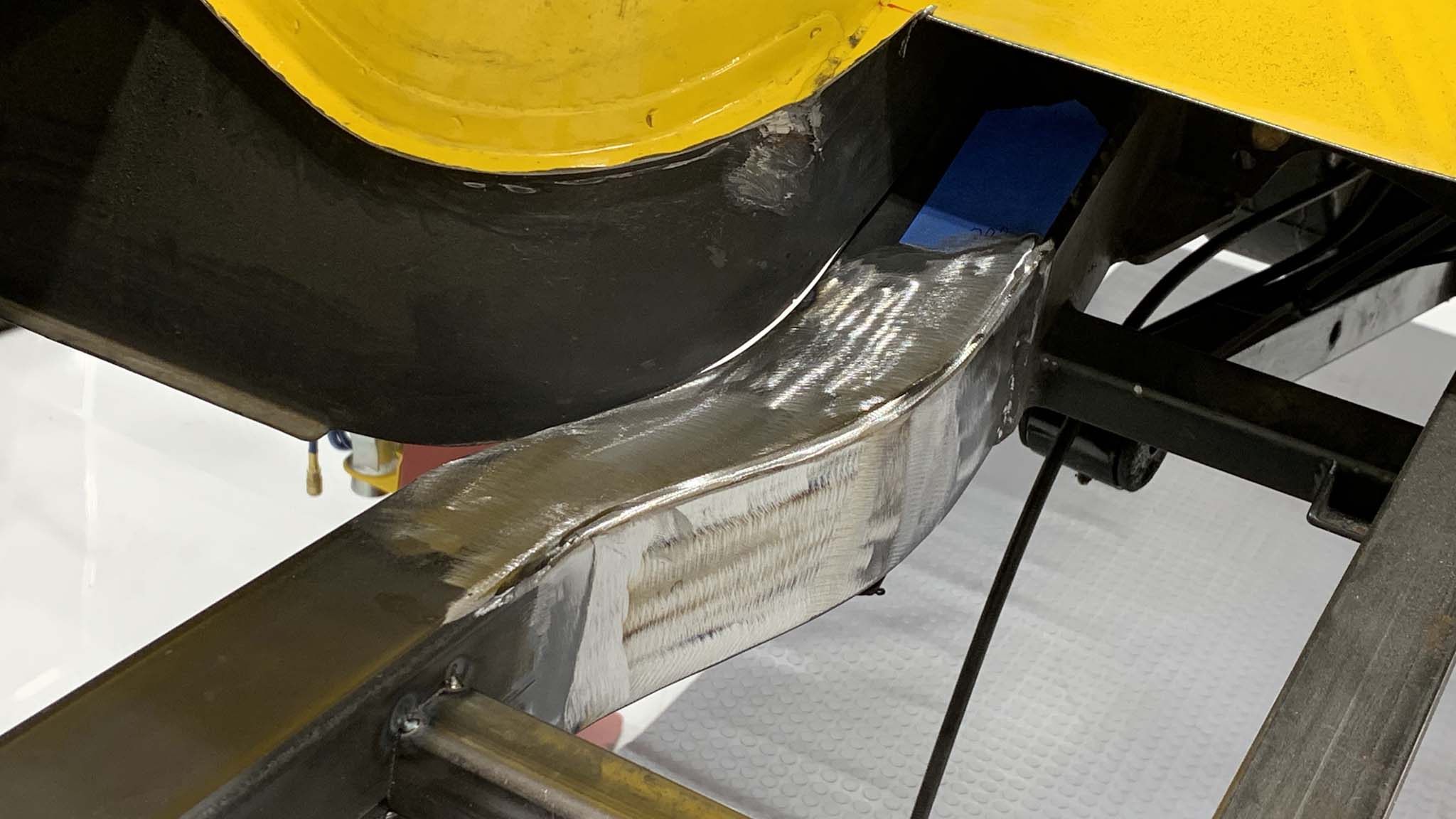 Of course, we didn't want to lose our massive rear tires, so Cagnazzi Racing used their 3D modeling to have frame sections computer bent so the frame would jog back out to its stock location right behind the rear tires.