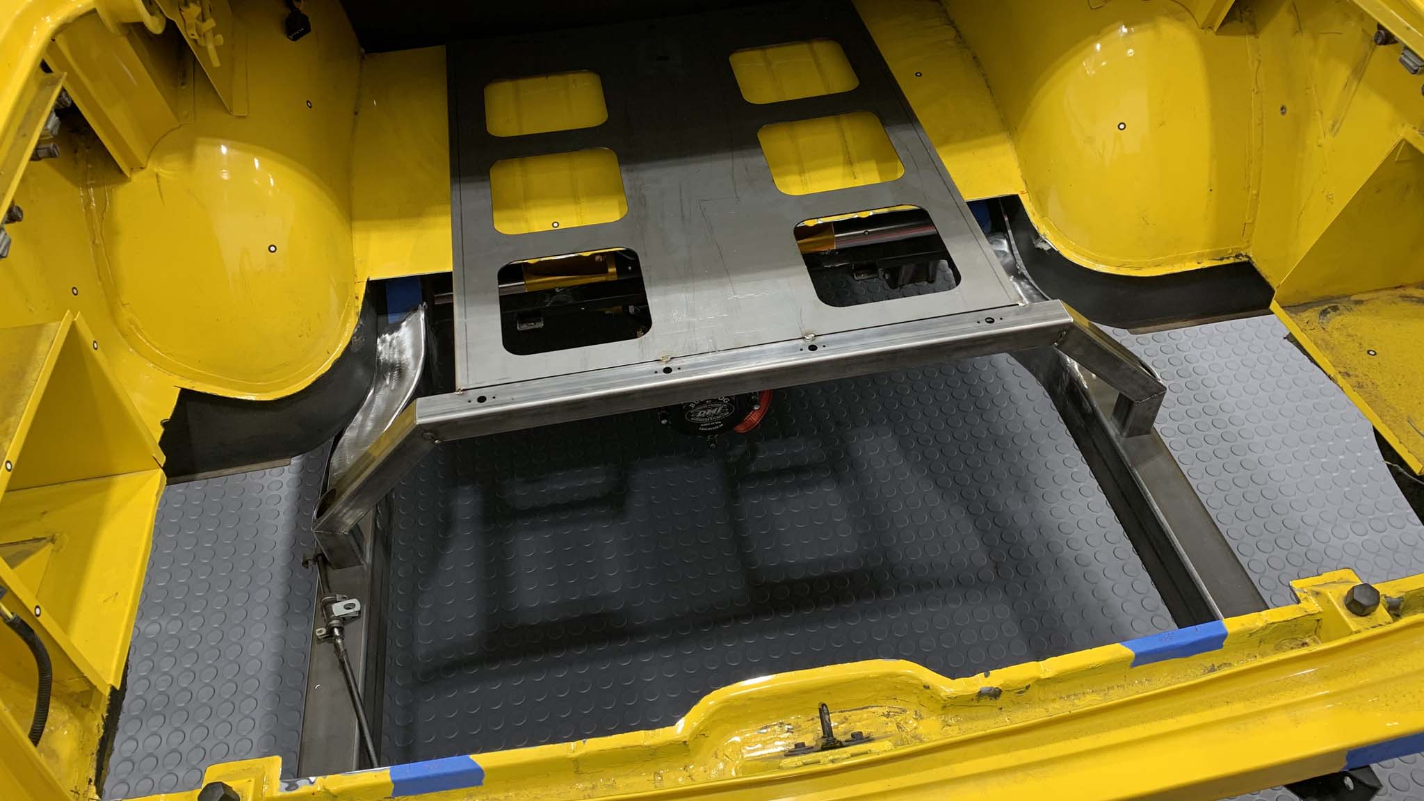 The only change to the driveshaft tunnel was to repair the section where people had hacked holes through it for various shifters and such.