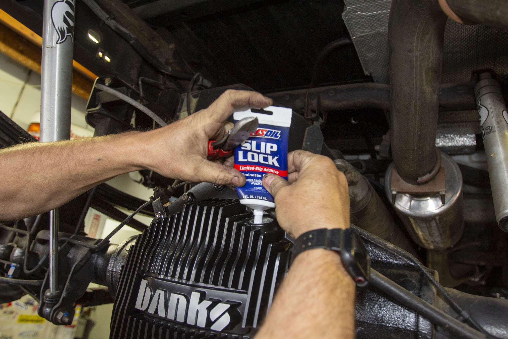 Because the Yukon Dura Grip differential is a clutch-type limited-slip it requires the use of a friction modifier to reduce clutch chatter. Because of how aggressive this limited-slip is, Amsoil recommended the use of three tubes of the company's Slip Lock limited-slip additive.