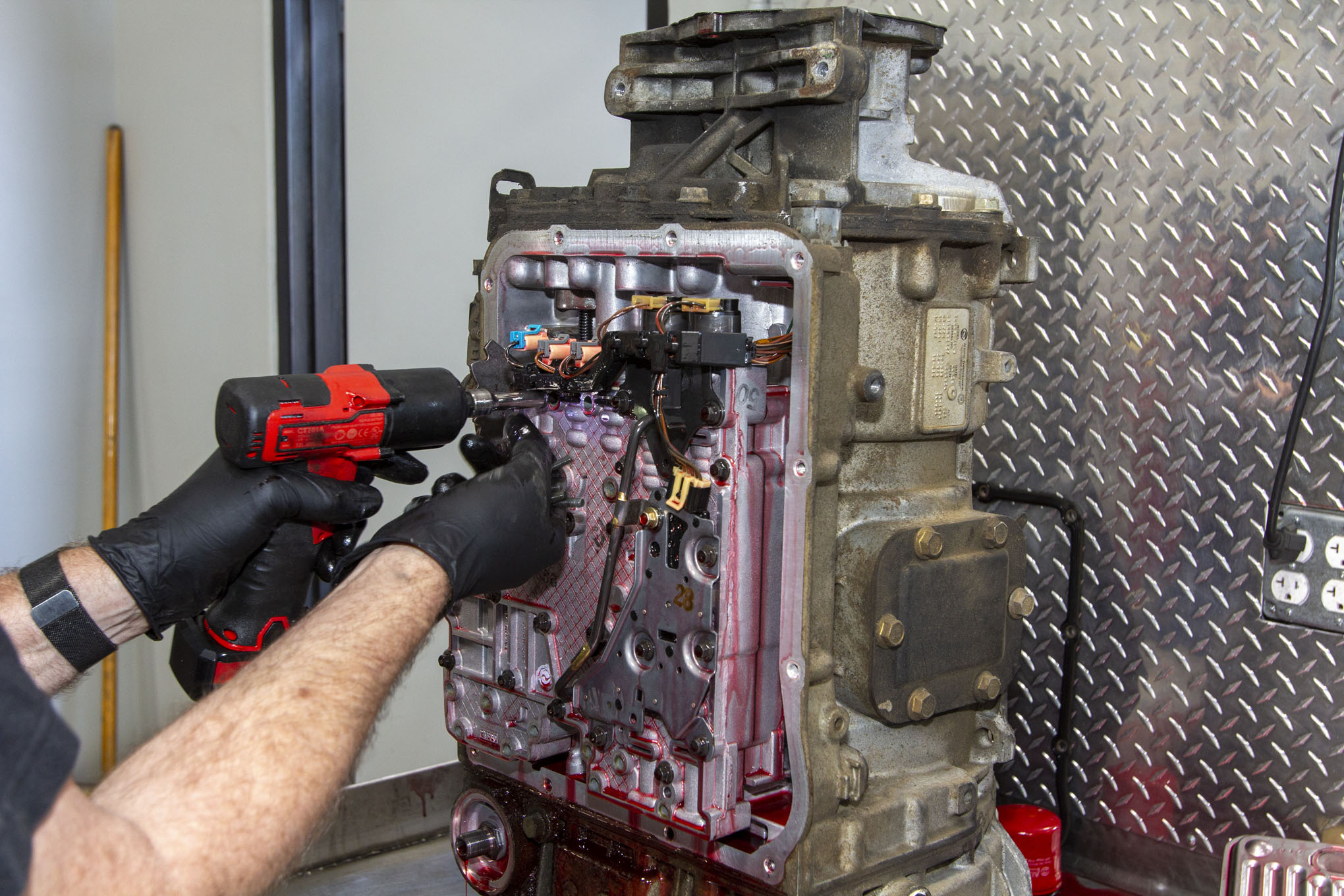 Care needs to be exercised when removing the valve body, as the small bolts that hold the valve body in place in the transmission case also look similar to the ones holding the two halves of the valve body together. Appropriate power tools can be used to remove a valve body but should never be used install one.