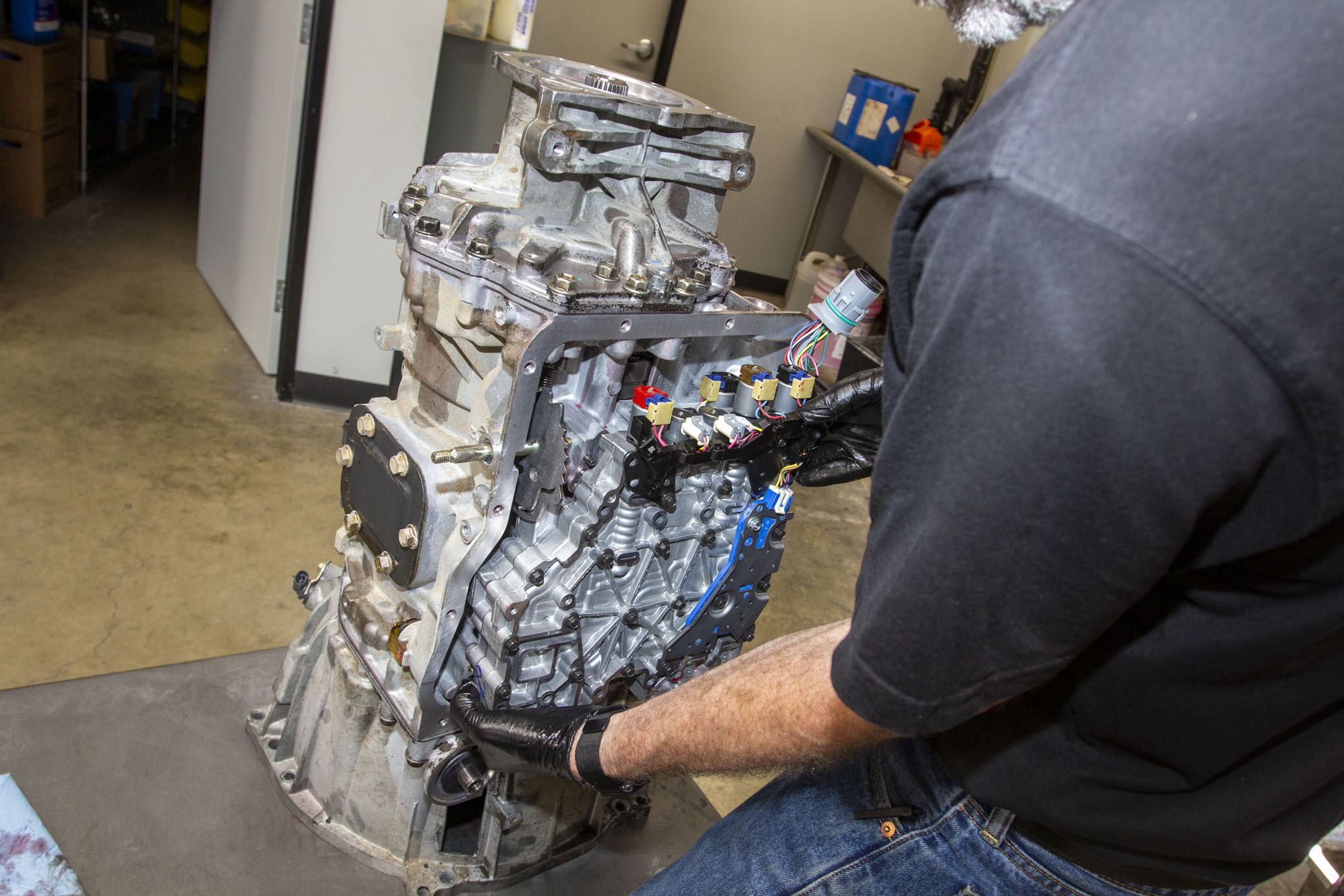 When everything is lined up, a slight wiggle and pressure is all that it takes to secure the valve body into place. If you're working with the transmission in the truck, it's imperative to have a couple bolts ready to hold it in place (because gravity, of course).