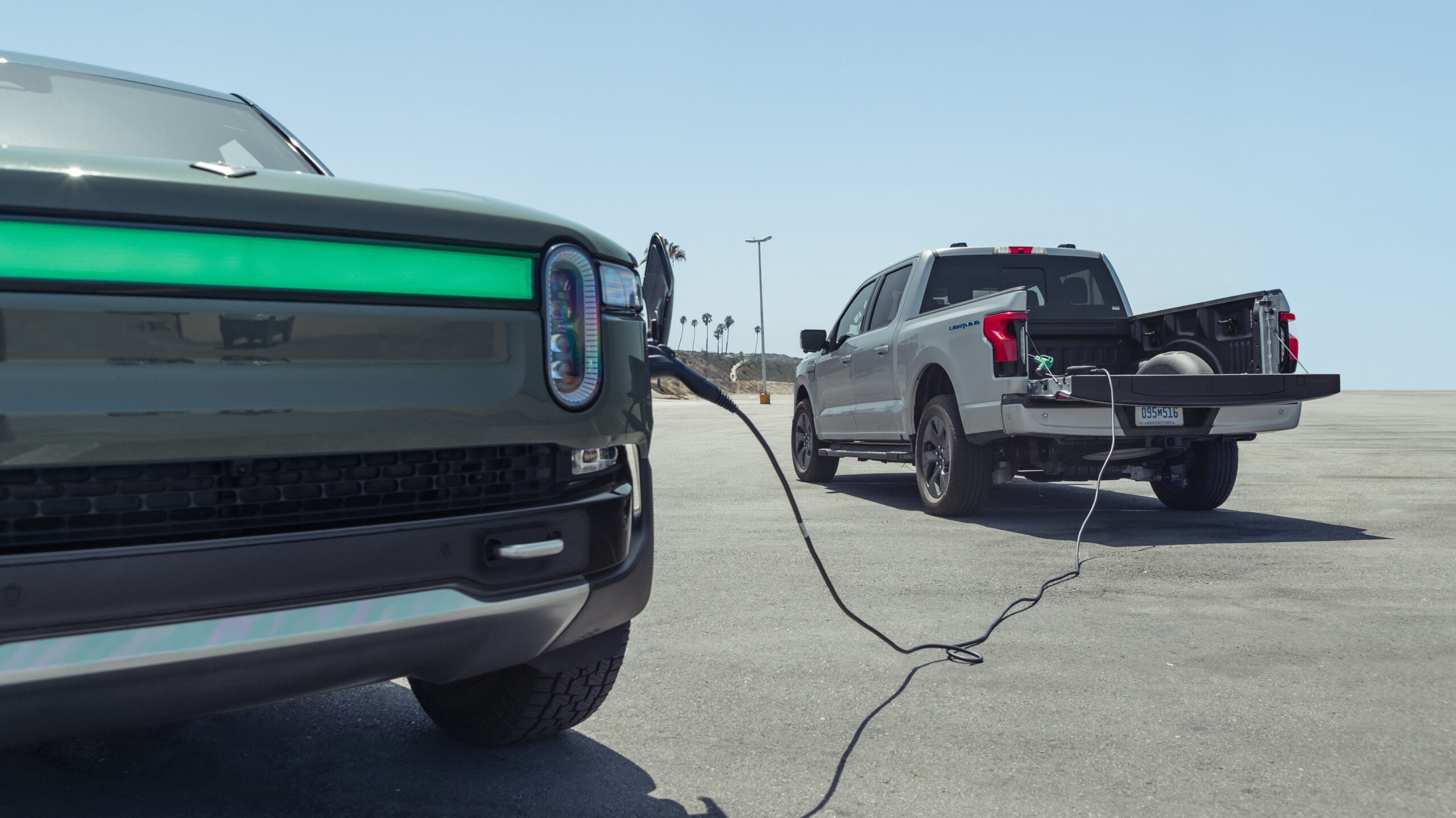 Want to charge a Rivian R1T, that is charging a Tesla Model 3 behind it? The Lightning can do it—and it's not hard!