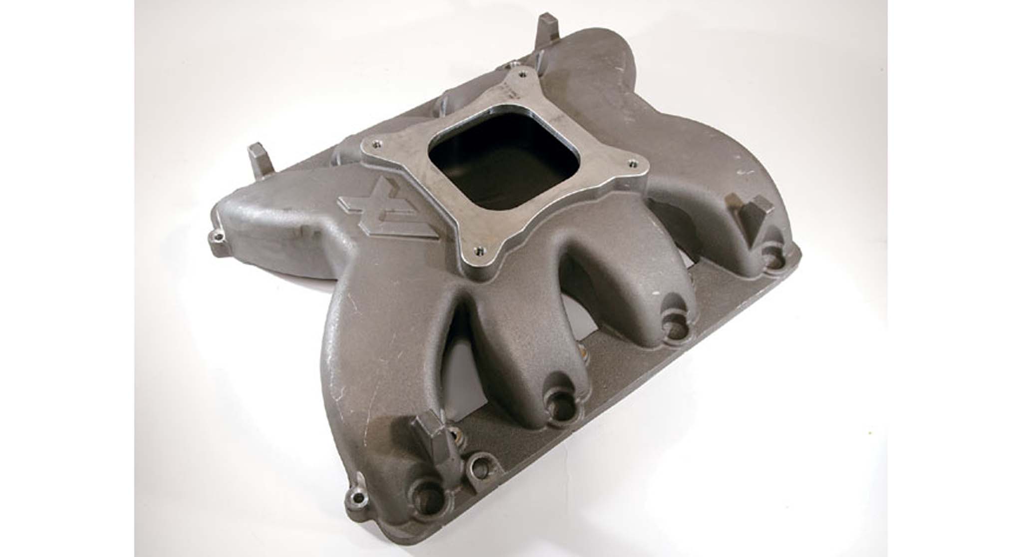 XV designed and cast a traditional-style, single-plane, four-barrel intake, making the swap to a carb a bolt-on. The manifold accepts a standard Holley 4150 carb in the conventional location. One of the design criteria was to retain a moderate overall height while maintaining a good transition in mating to the vertical intake ports of the Hemi heads. A shallow plenum and raised runners compared to other intakes on the market helped XV achieve this goal, allowing excellent hood clearance. To up the ante further, XV can supply a carburetor that's already jetted and calibrated for the Hemi in various states of tune, from the base stock engine to XV's bigger cam packages, delivering either a rated 400 or 420 hp.