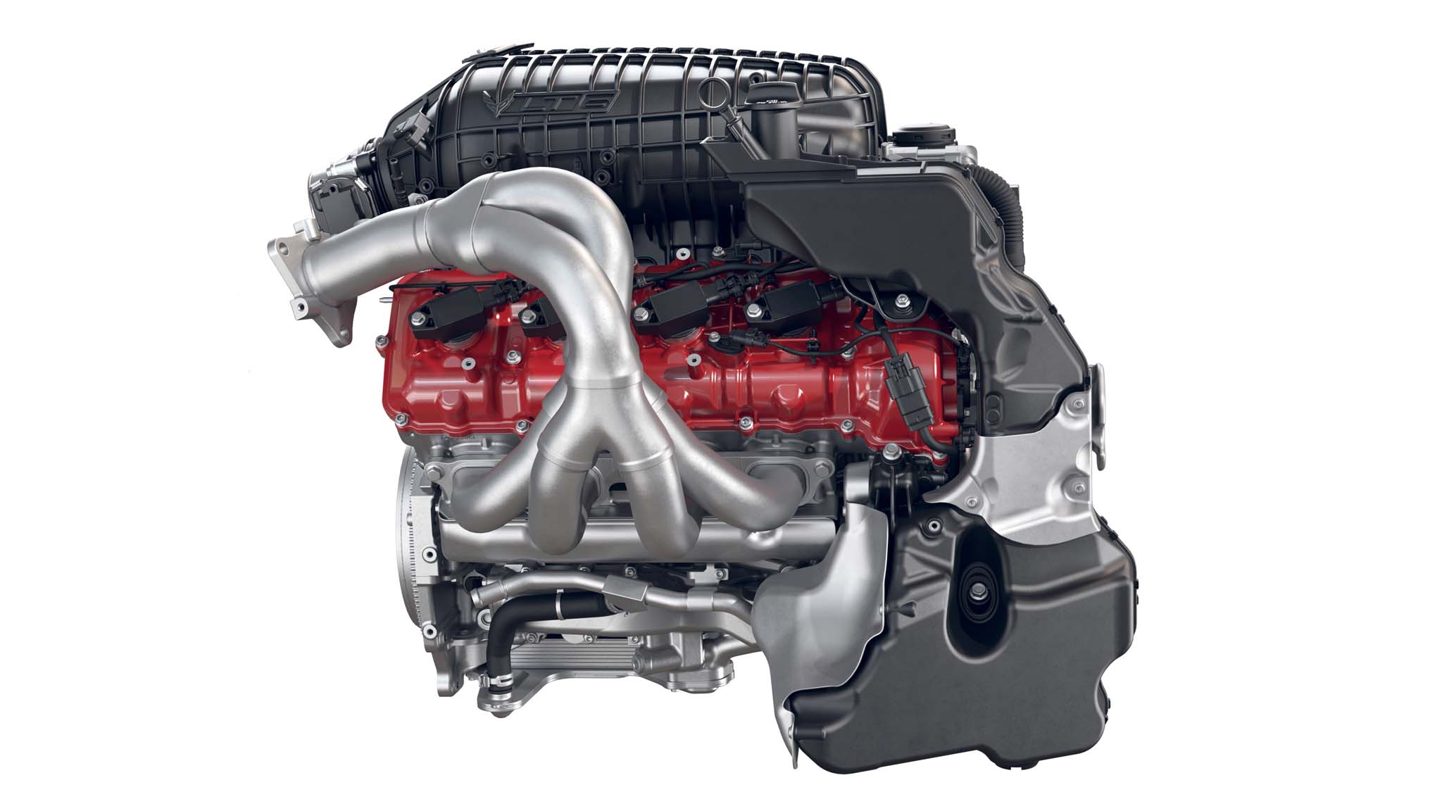 How big of a departure from the "norm" of previous LS and LT engines? Well, aside from what we've already mentioned how about how the starter is mounted in the rear of the LT6's valley beneath the intake while the alternator lives in the same valley but to the front of the mill. The valley is pretty crowded since it also houses the twin high-pressure cam-driven (optimized for 9,000-rpm operation) fuel pumps. Another oddity compared to previous engines are the injectors which are side mounted under the exhaust valves. This not only made room for the huge active intake, but it also mixes the fuel better.