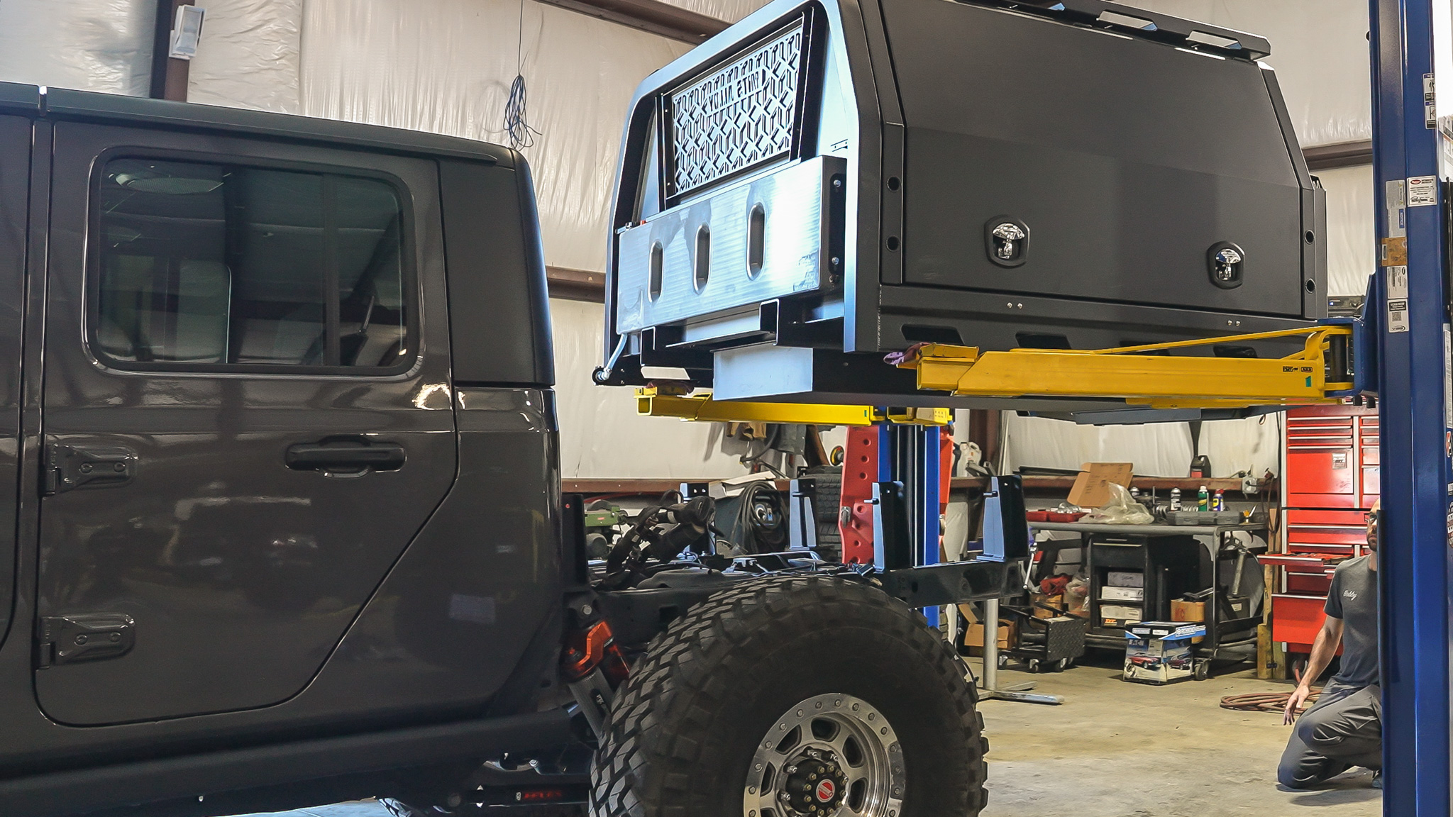 Instead of piecemealing a host of aftermarket solutions, we opted for a bolt-on tray bed that offers ruggedness and better storage.