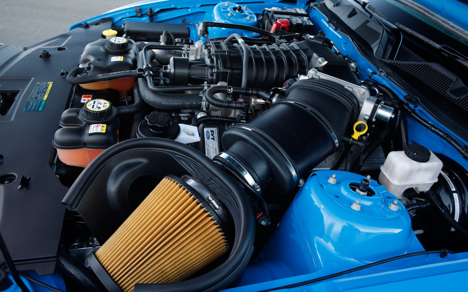 Other notable changes: Relative to the KR, the front springs are softer (but 13% firmer than the old GT500's); rear springs are the same (7% stiffer than the GT500's); Tokico dampers are similar and stiffer than GT500's, but their response-rate curves are recontoured for better compliance; and the front anti-roll bar is softer to reduce understeer. The steering ratio is unchanged, but all Mustangs get a stiffer steering-column isolator and the Shelby's intermediate shaft is 18% stiffer for improved road feel. The torsion bar that apportions power steering assist is totally redesigned to reduce the amount of steering input needed to turn the car (addressing a major complaint we had with the KR in our Best Handling test).