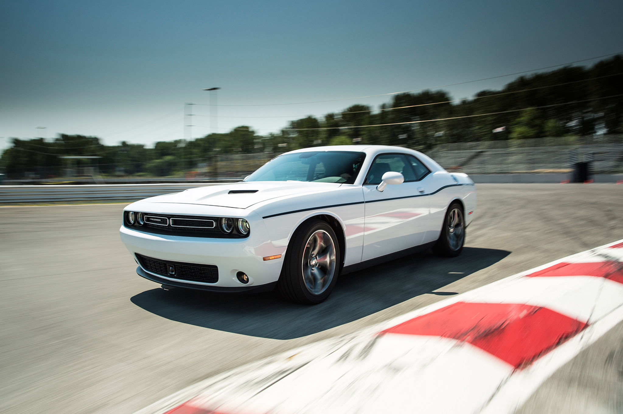 We also got behind the wheel of a V-6-poweredChallenger SXT, which, at first glance, left us wondering if a six-cylinder would be enough for the two-door brute. It didn't take long to quell those doubts and the eight-speed auto definitely helps the 3.6-liter V-6 (305 hp and 268 lb-ft) shine. (The six-speed manual is still off limits to the V-6.) Dodge says this powertrain will get 30 mpg on the highway, which is 3 mpg more than the outgoing 2014 model with the five-speed auto.