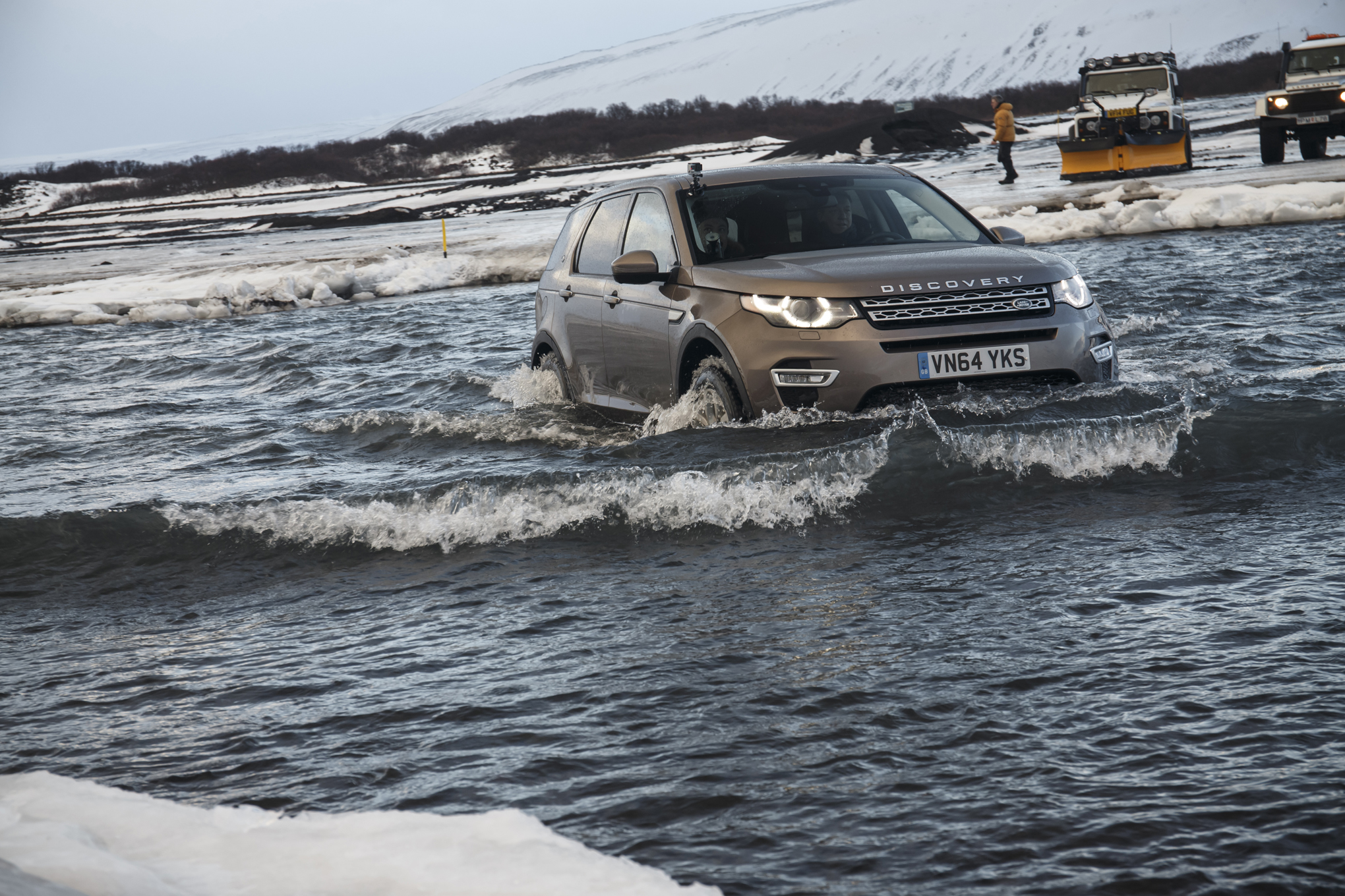 We did plunge the Discovery Sport into 2 feet of fast-flowing water that came midway up the doors. As you would expect from the brand, the capable rig had no issue whatsoever fording the nearly frozen river. That is why you're spending the extra money on a Land Rover product -- the promise of go-anywhere capability. And go anywhere we did. Up snow-covered volcanic hills and down icy, cragged trails, the Discovery Sport never so much as hinted at getting stuck. Again, the studded tires no doubt helped, but so did Land Rover's patented Terrain Response system that we had locked into Mud, Gravel and Snow the entire time (save for some ice ballet/donuts I performed in a frozen church parking lot with every single system switched off). Land Rover was obsessed with us using the Hill Descent Control feature, but with the amount of grip on hand, I much preferred paddle shifting the nine-speed ZF transmission down a couple of gears when encountering a steep grade. Of note: This is the first nine-speed-equipped vehicle I've driven where the transmission felt properly tuned.