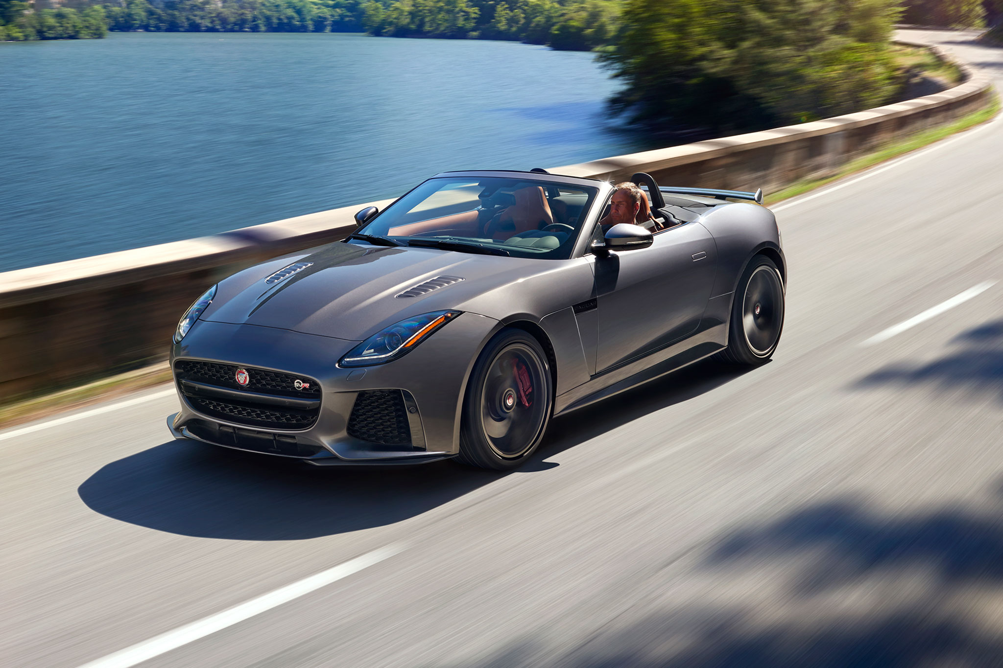 Jaguar says the F-Type SVR is 55 pounds lighter than the F-Type R and that the available CCM braking system, carbon-fiber roof, and other optional equipment reduce overall vehicle weight by as much as 110 pounds.